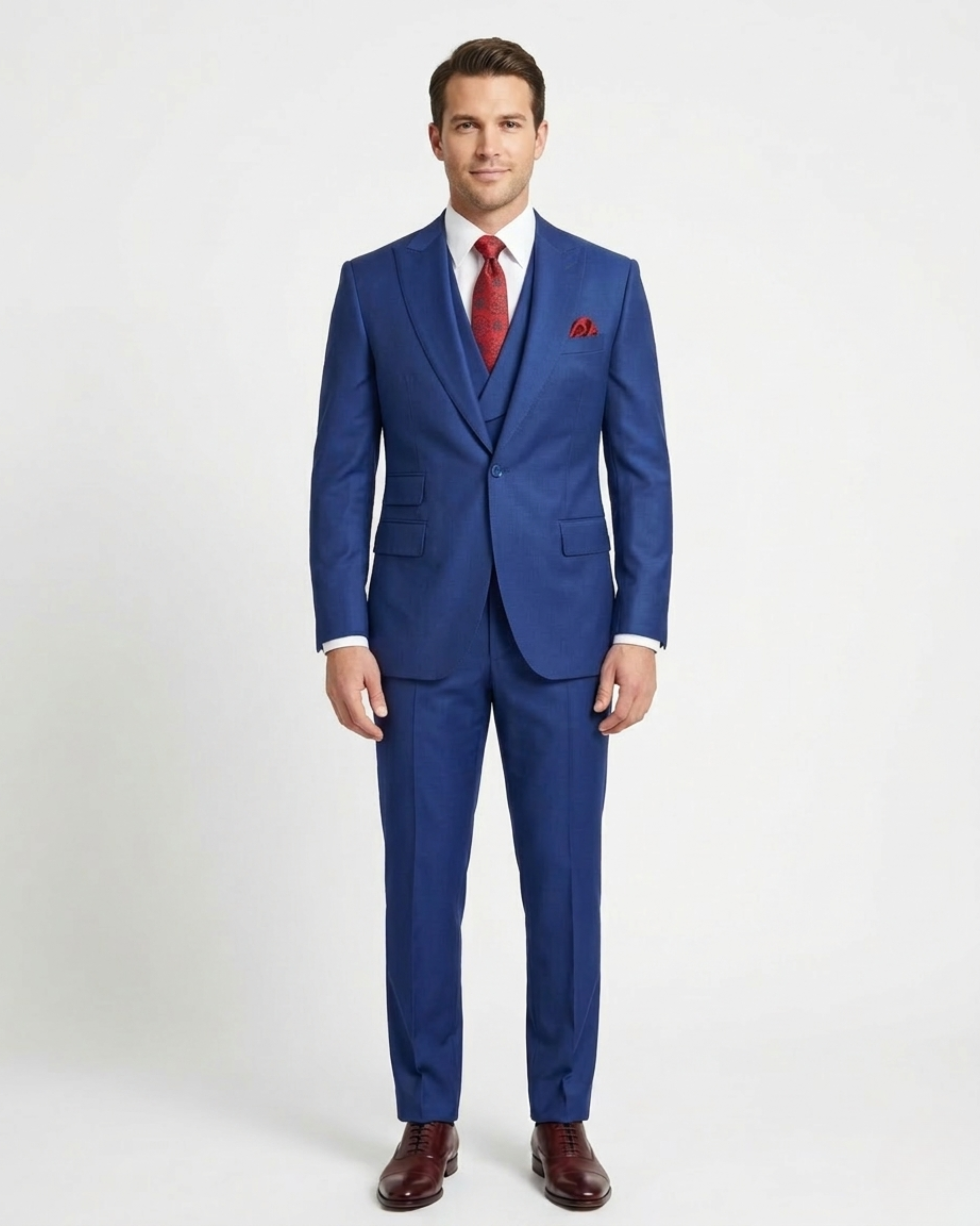 Alberto Nardoni Solid Sapphire Blue 100% Wool 1 Button 3 Piece Regular Fit Suit