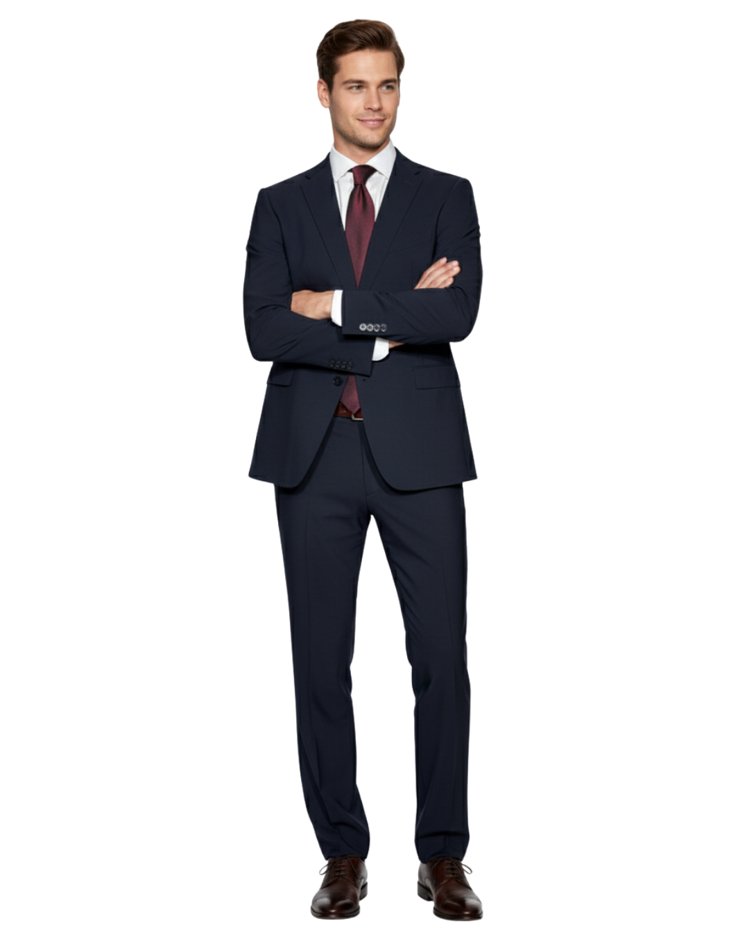 Armani Collezioni Solid Dark Blue M-Line Notch Lapel Modern Fit 2 Button Wool Suit - 44R