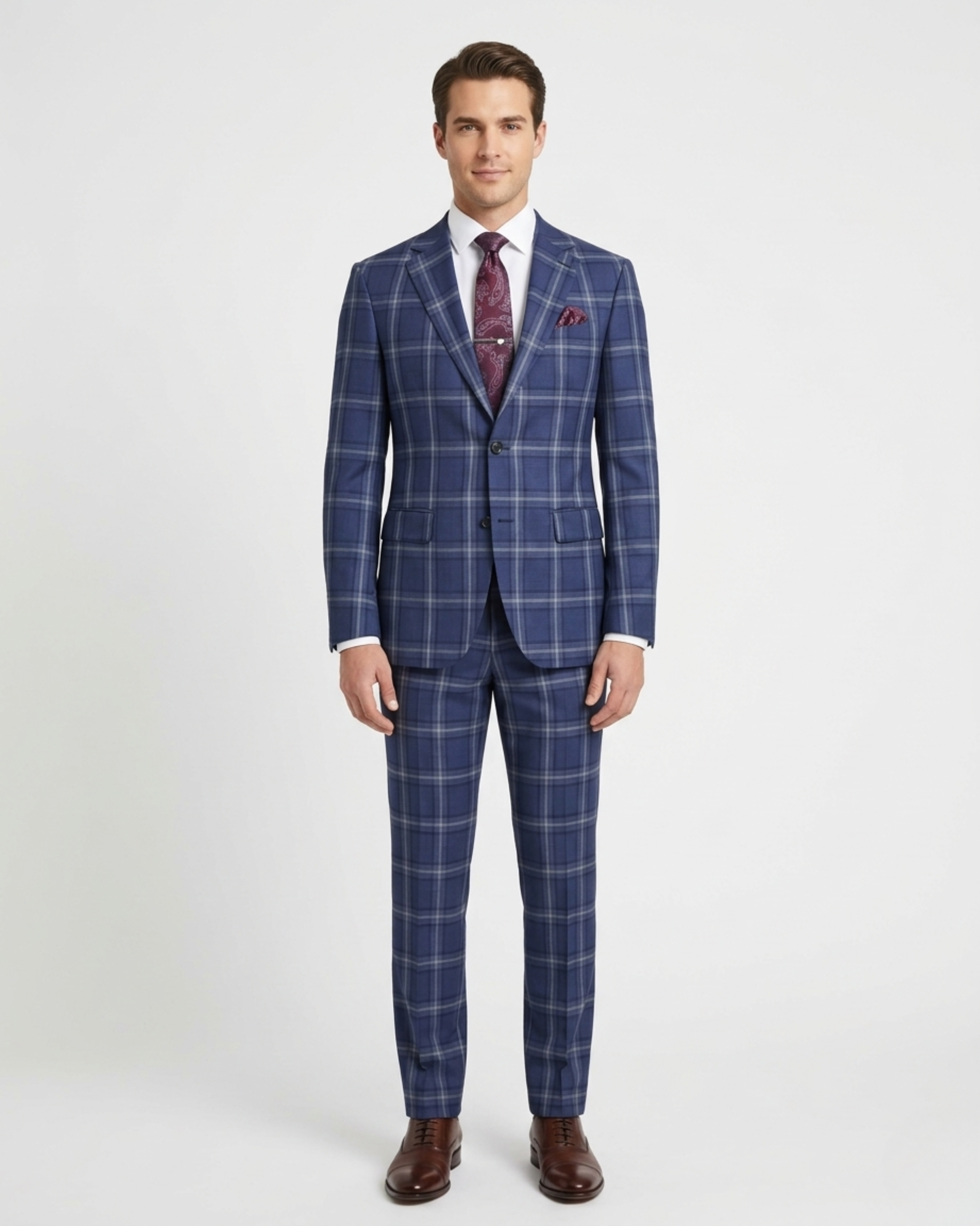 Arthur Black Mens Blue Plaid Slim Fit 100% VBC Wool Prehemmed Suit