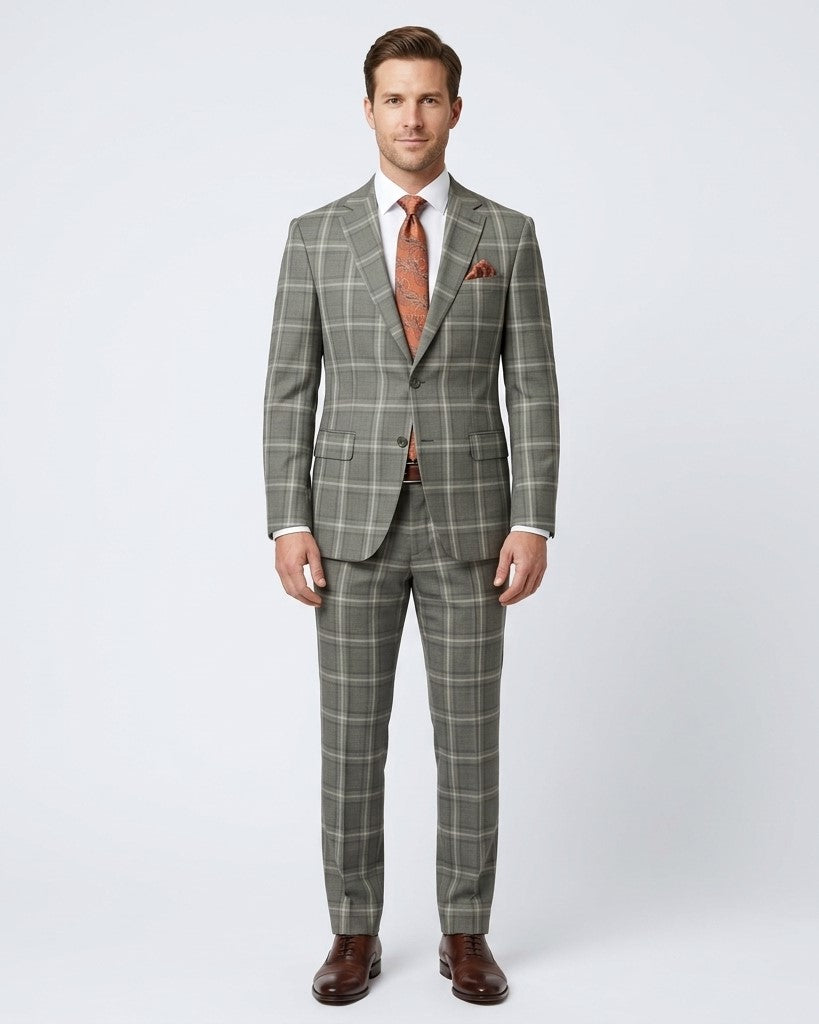 Arthur Black Mens Green Plaid Slim Fit 100% VBC Wool Prehemmed Suit