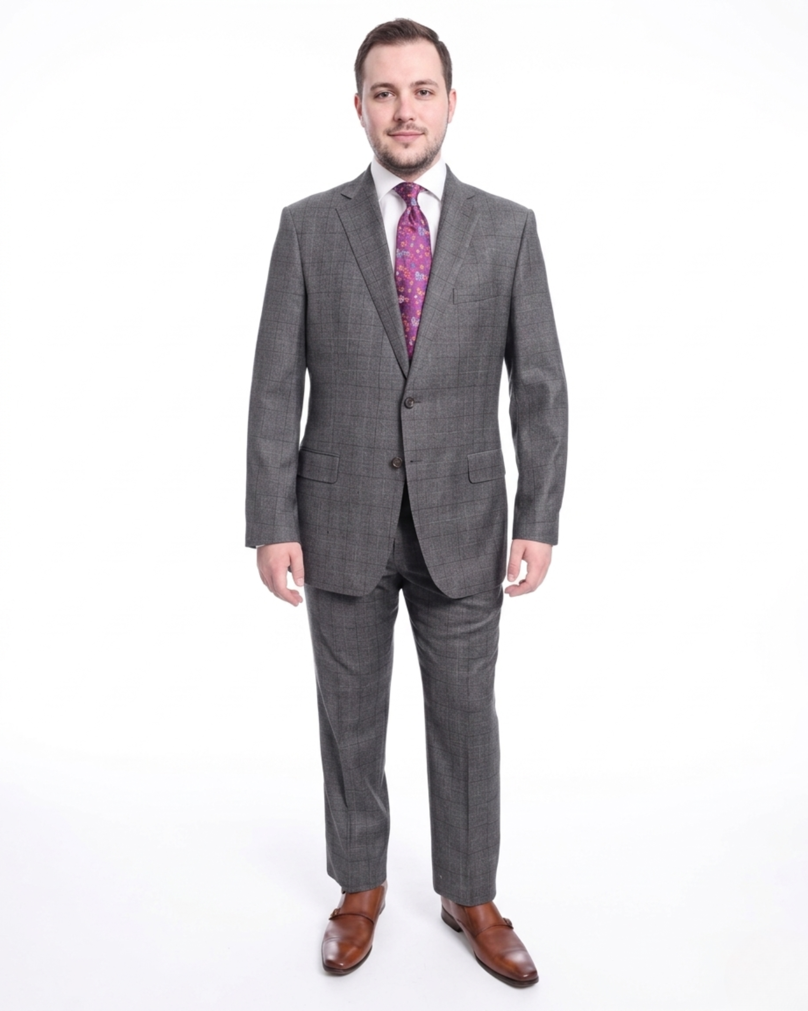 Blujacket Classic Fit Gray Plaid Windowpane Two Button Reda Wool Suit