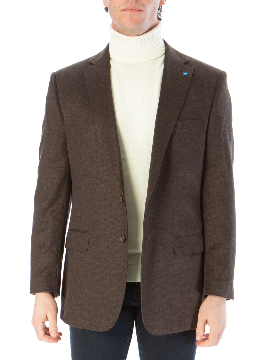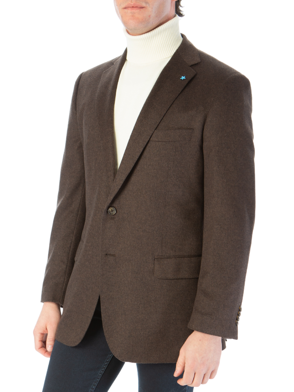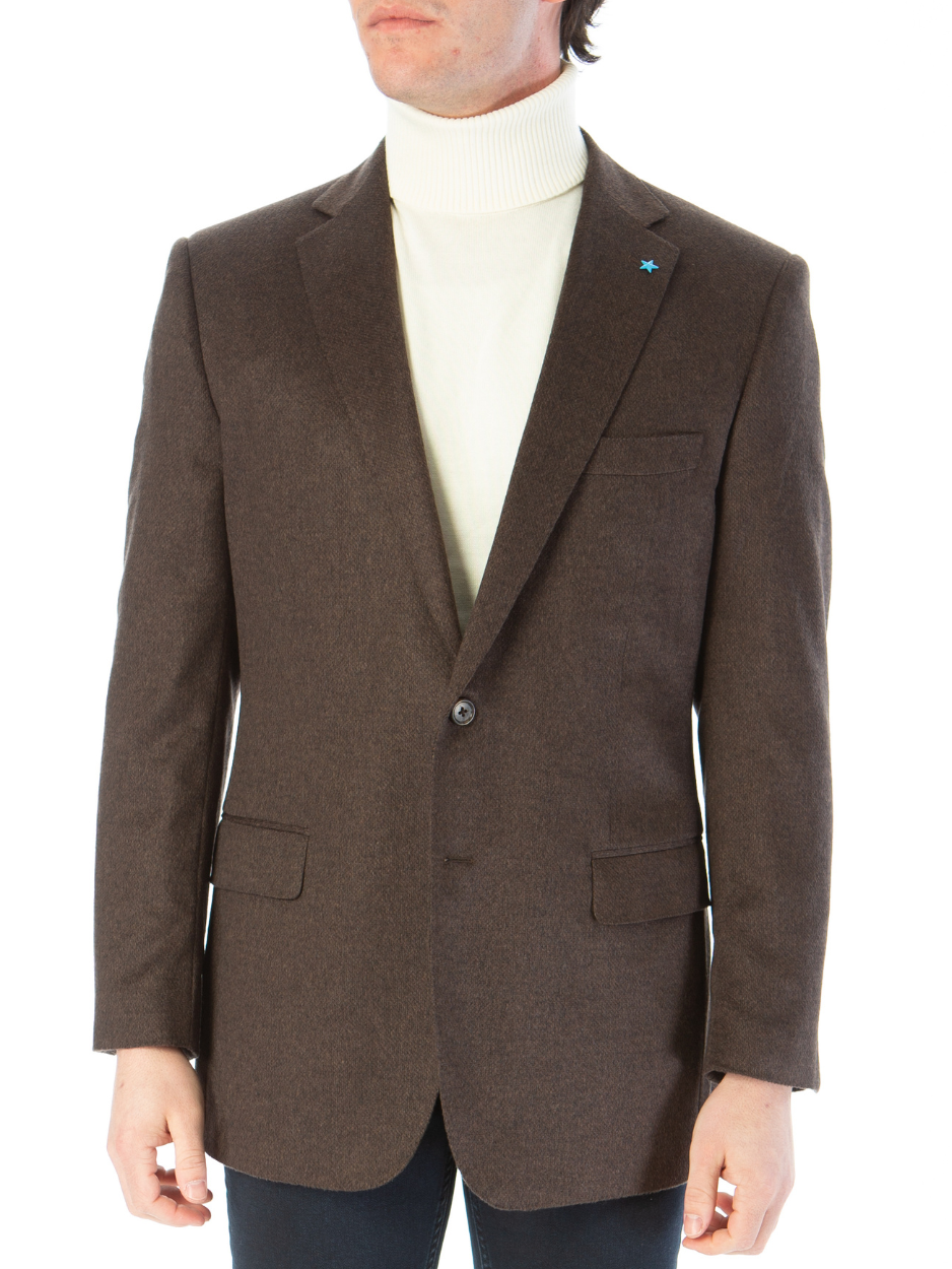 Blujacket Mens Brown Regular Fit Silk Cashmere 2 Button Blazer Sportcoat