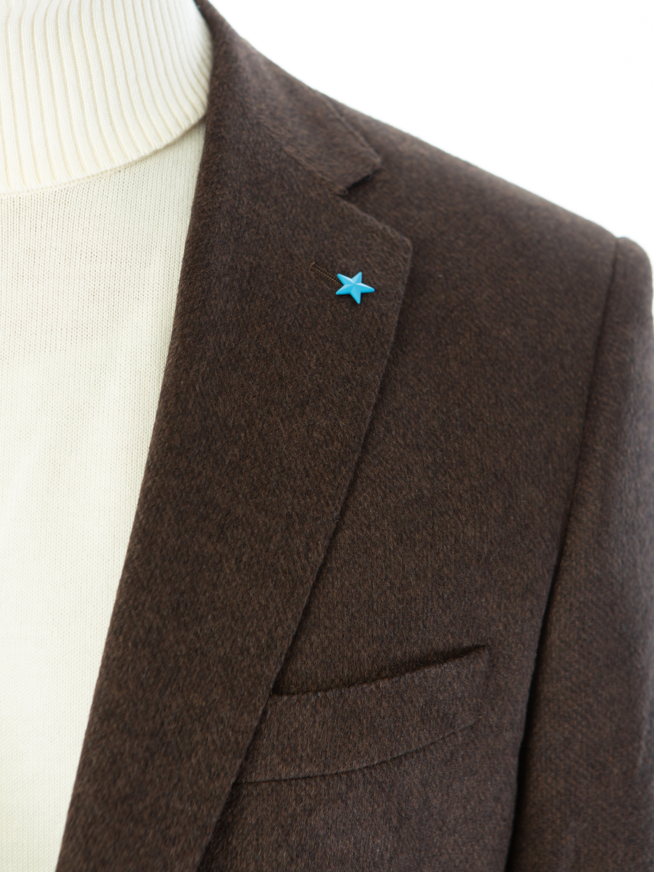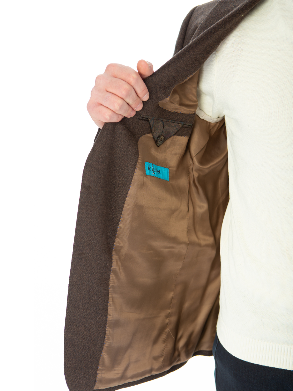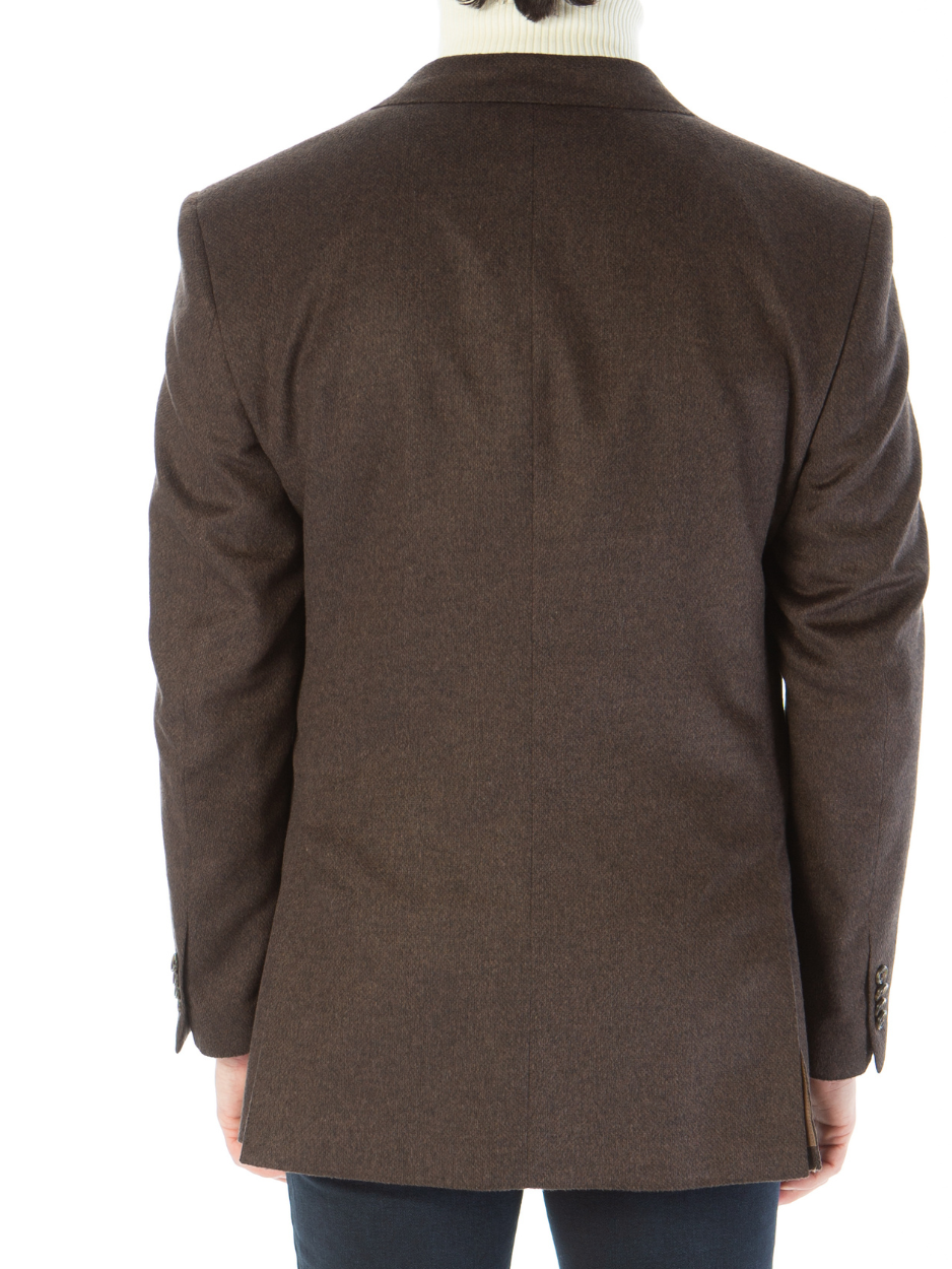 Blujacket Mens Brown Regular Fit Silk Cashmere 2 Button Blazer Sportcoat