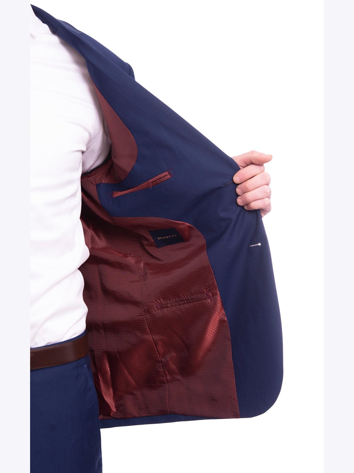A finely tailored slim fit wool suit at a reasonable price? You found it. The Braveman Slim Fit blue Two Button Suit is made from synthetic fabric that drapes superbly across the body. It is expertly designed and constructed for optimal fit. It’s the ideal suit for wedding parties and groomsmen, as well as for year-round business wear.