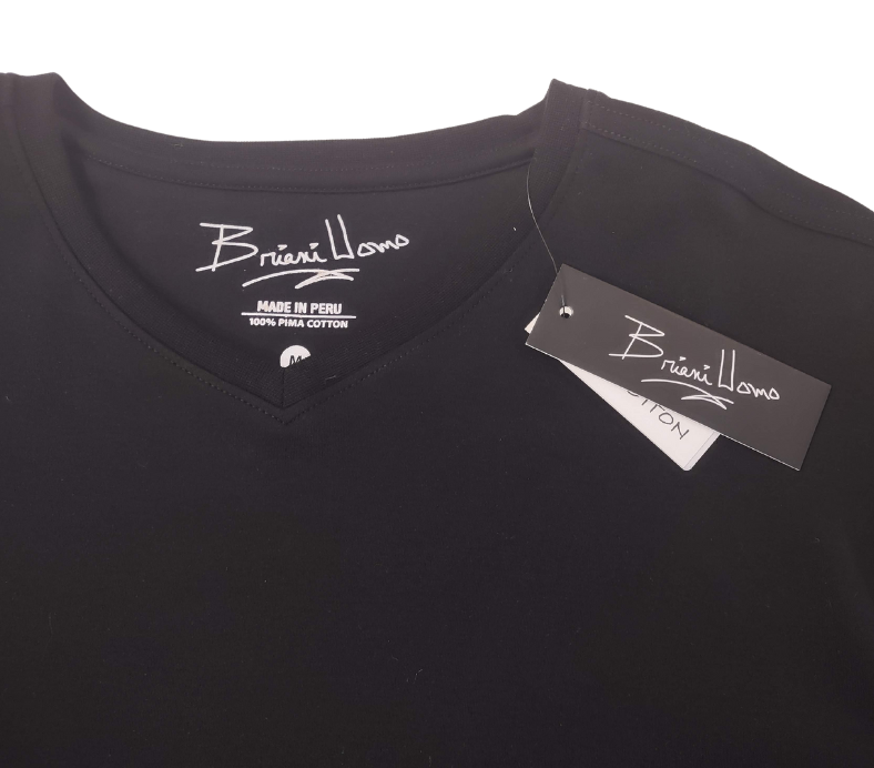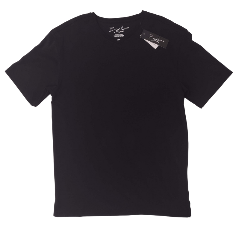 Briani Uomo Mens Black Short Sleeve V Neck 100% Pima Cotton Casual Shirt