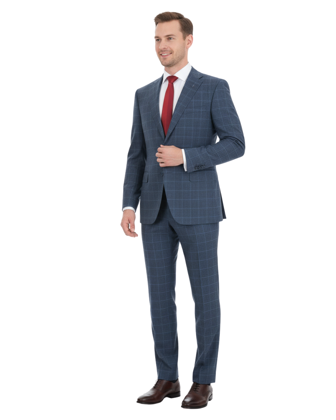 Step into timeless elegance with this impeccably tailored, half-canvassed blue plaid 100% wool suit. Crafted with signature Italian precision, this sophisticated masterpiece effortlessly exudes refined taste, making a lasting impression in any special occasion or business setting.