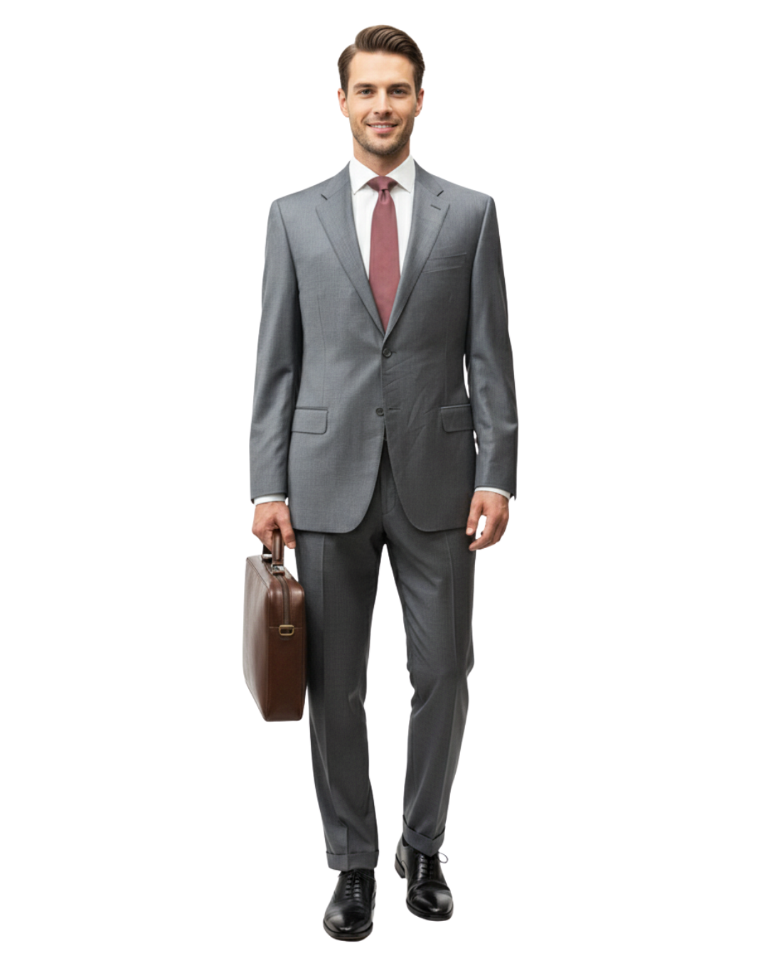 • Includes plain front trousers and a two-button jacket