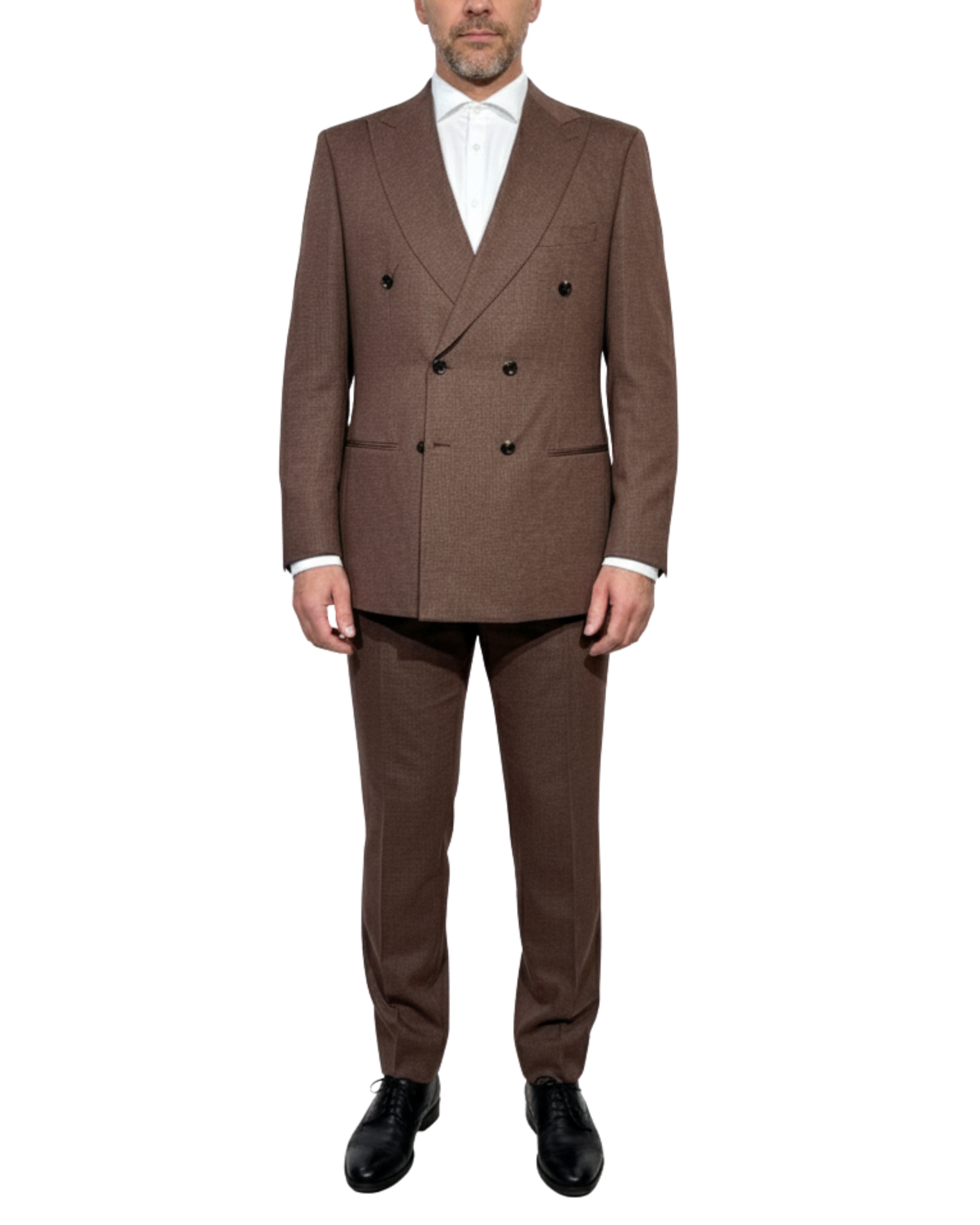 This Canuti brown double-breasted suit features a refined micro houndstooth pattern woven in earthy tones. Designed in a modern fit... Read more