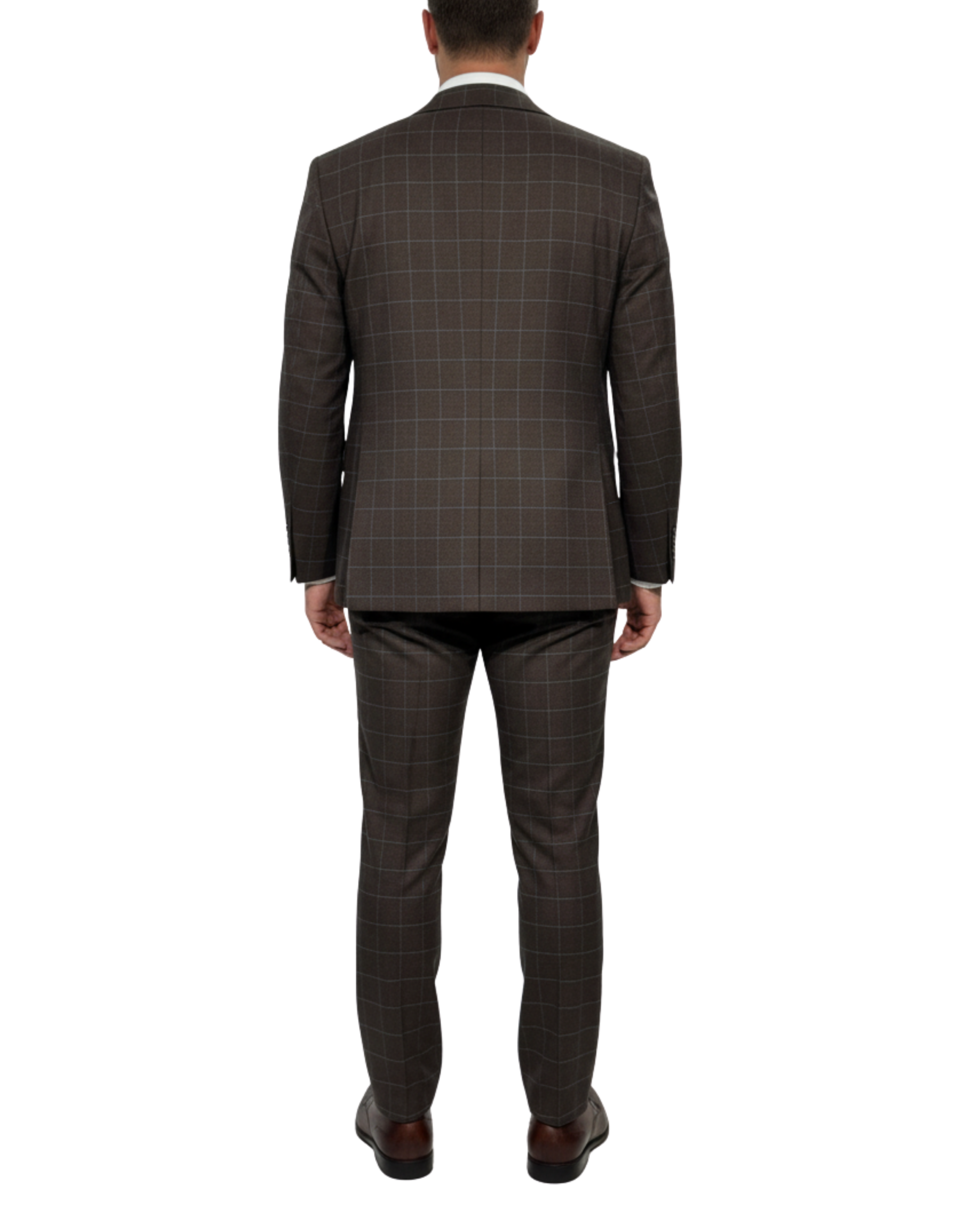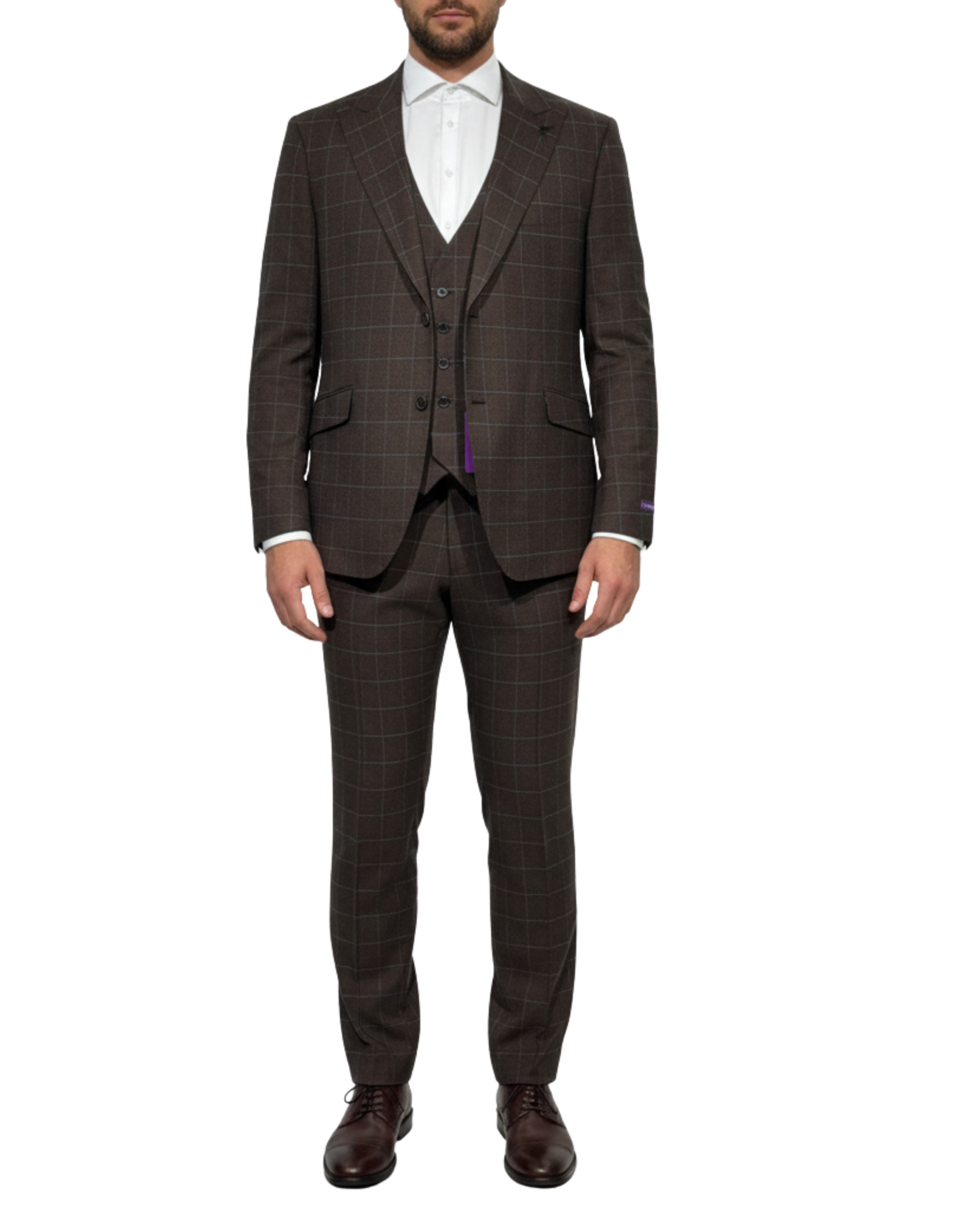 Canuti Brown Windowpane Modern Fit Peak Lapel 3 Piece Suit