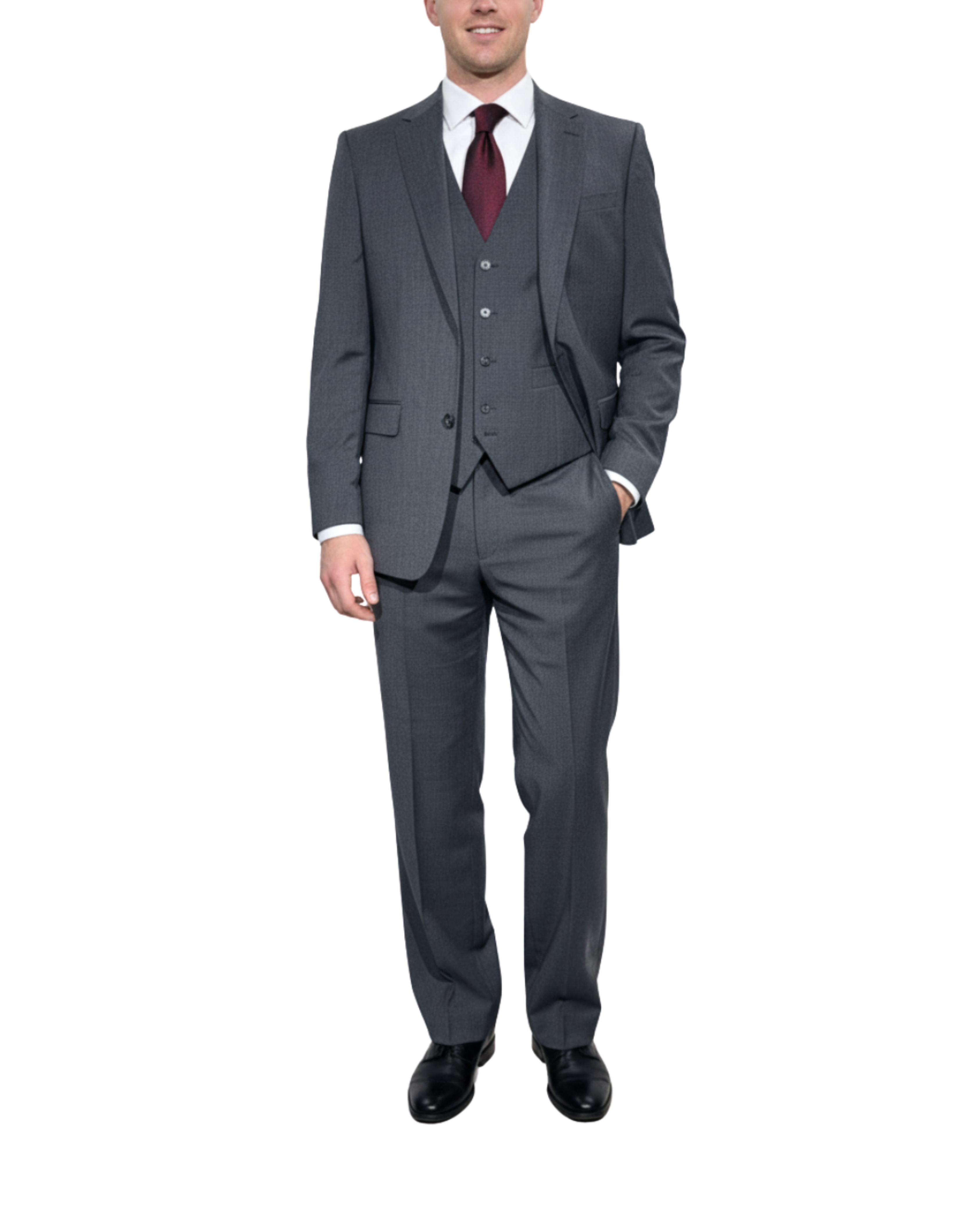 Cleo Luxor Charcoal Gray Regular Fit Wool Stretch 3 Piece Suit