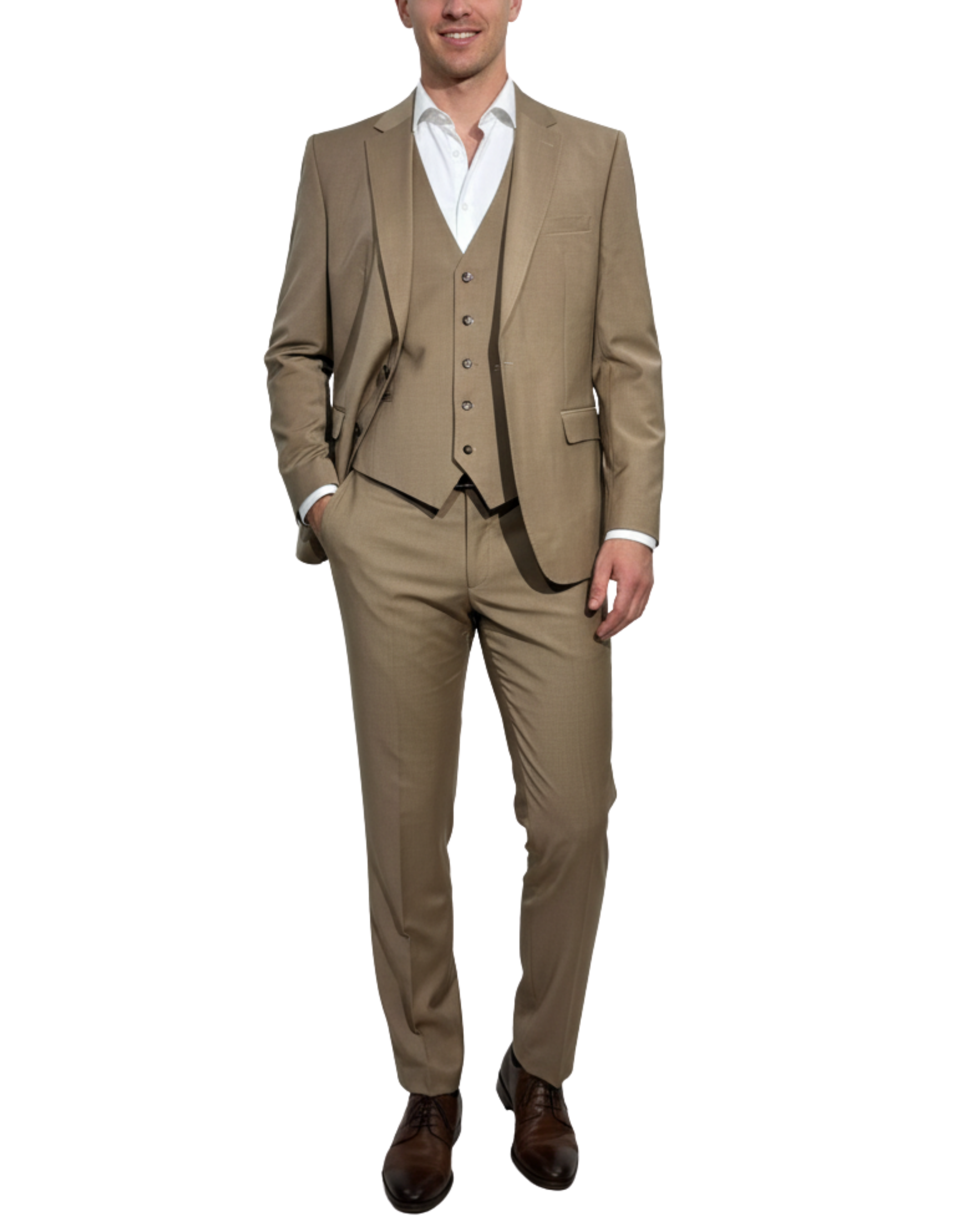 Cleo Luxor Desert Beige Regular Fit Wool Stretch 3 Piece Suit