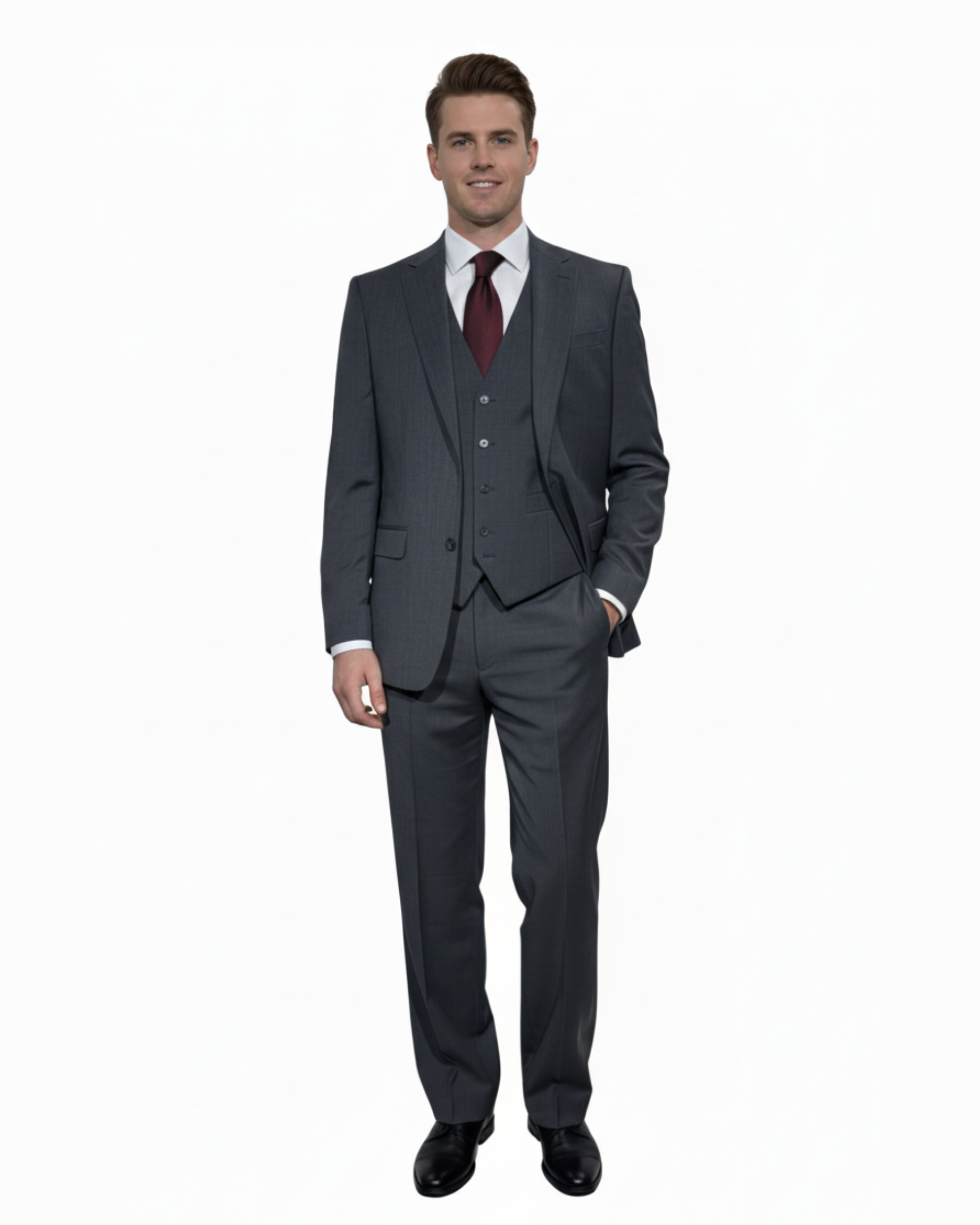 Cleo Luxor Obsidian Charcoal Regular Fit Wool Stretch 3 Piece Suit