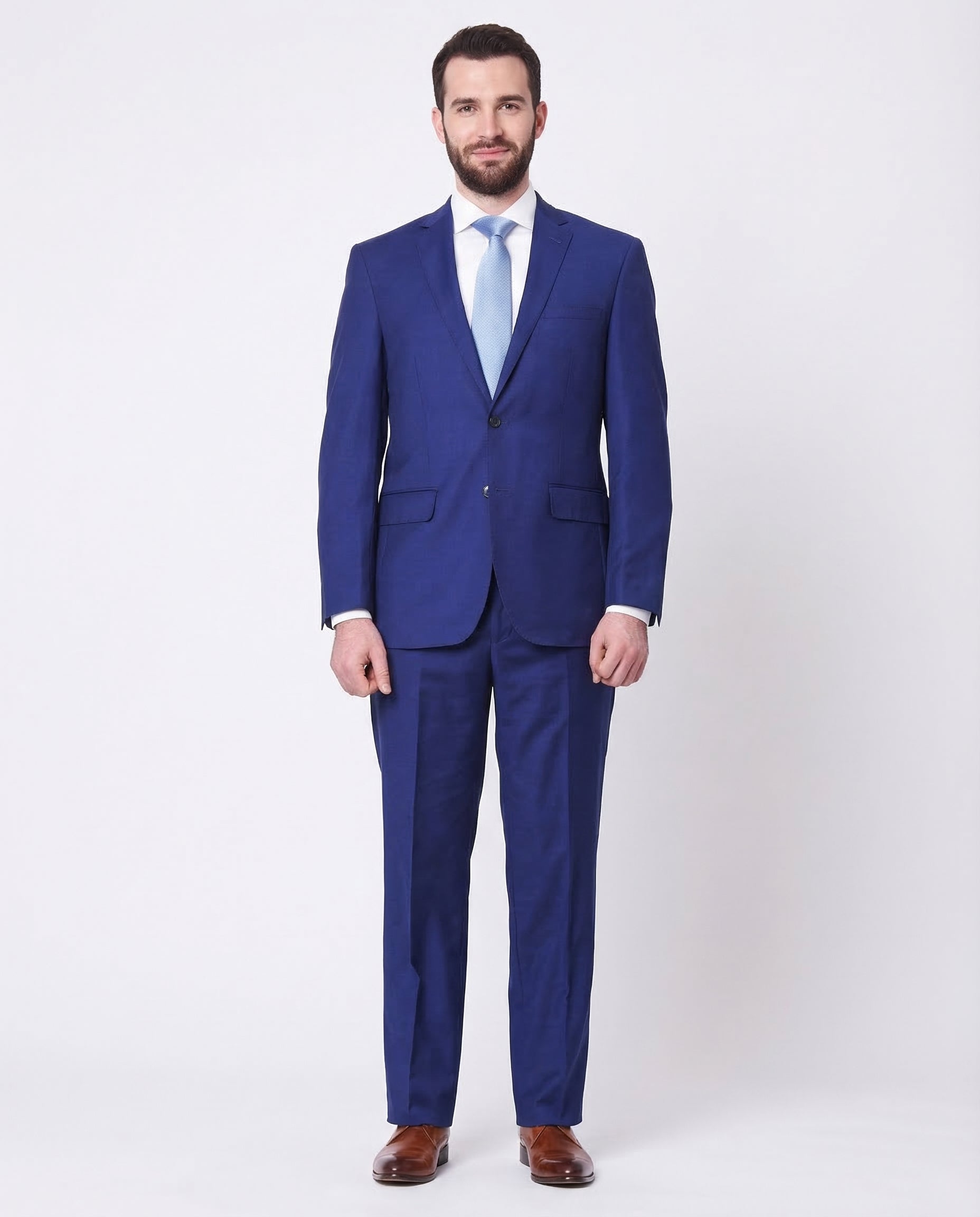 Mens Slim Fit Two Button 100% Wool Wrinkle Resistant Suit - Royal Blue