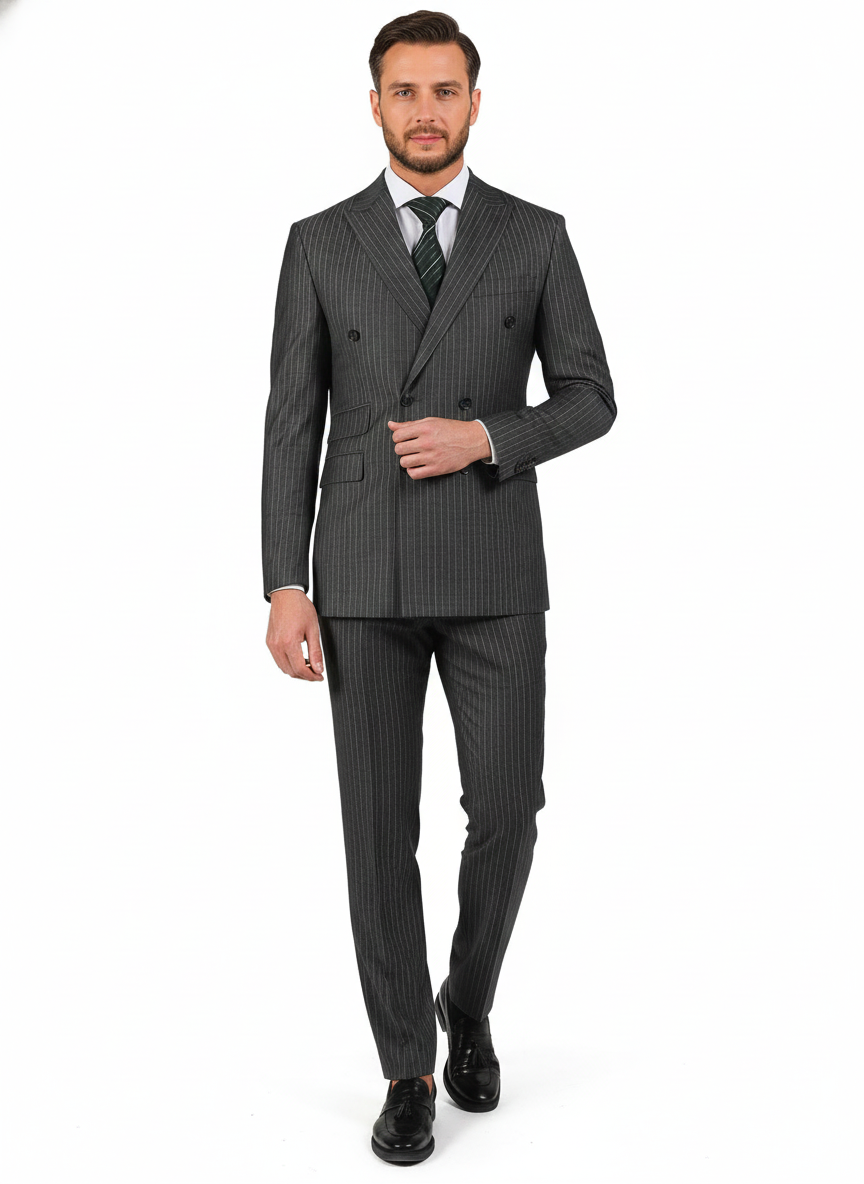 Di'nucci Slim Fit Gray With Light Blue Stripe Double Breasted Suit
