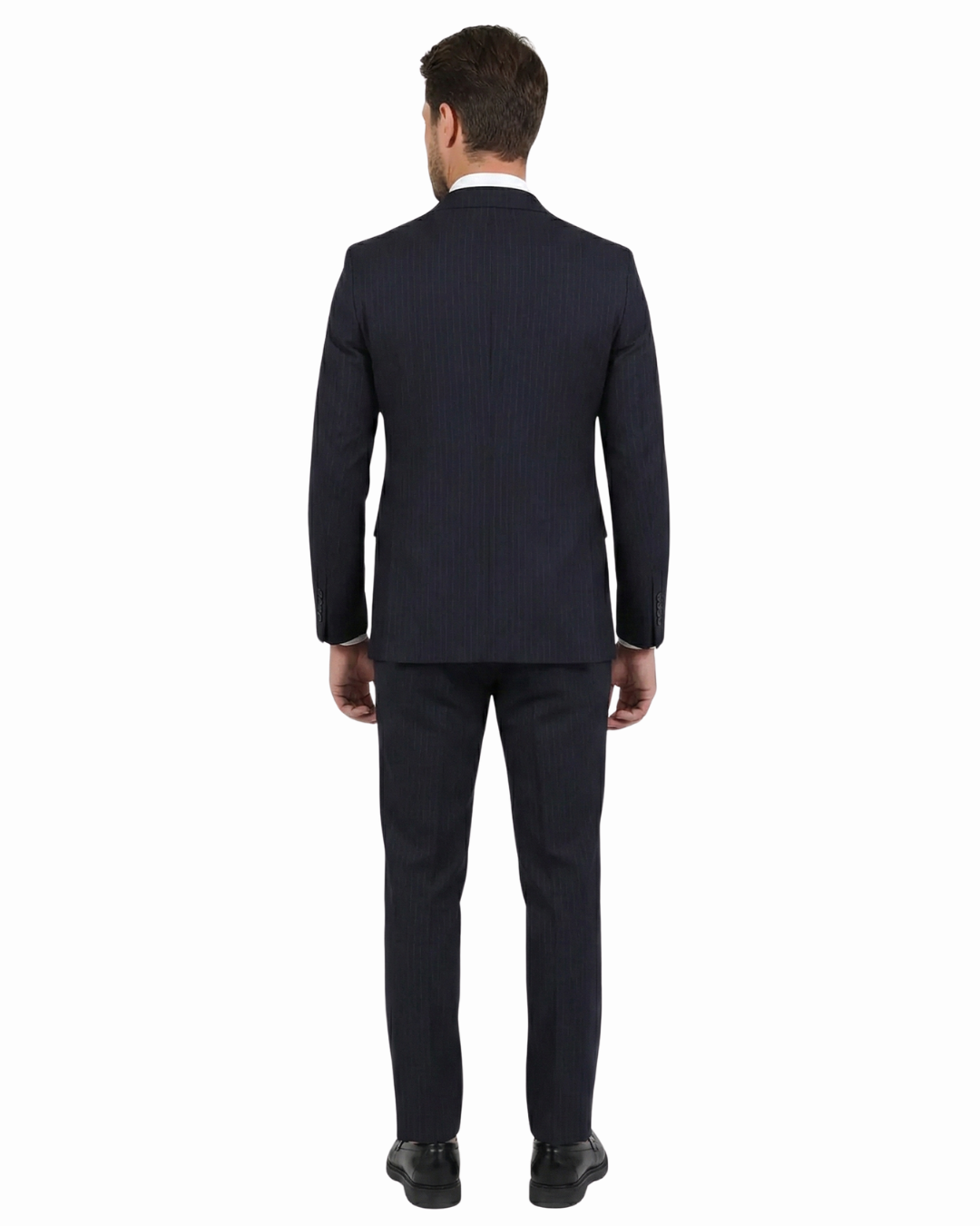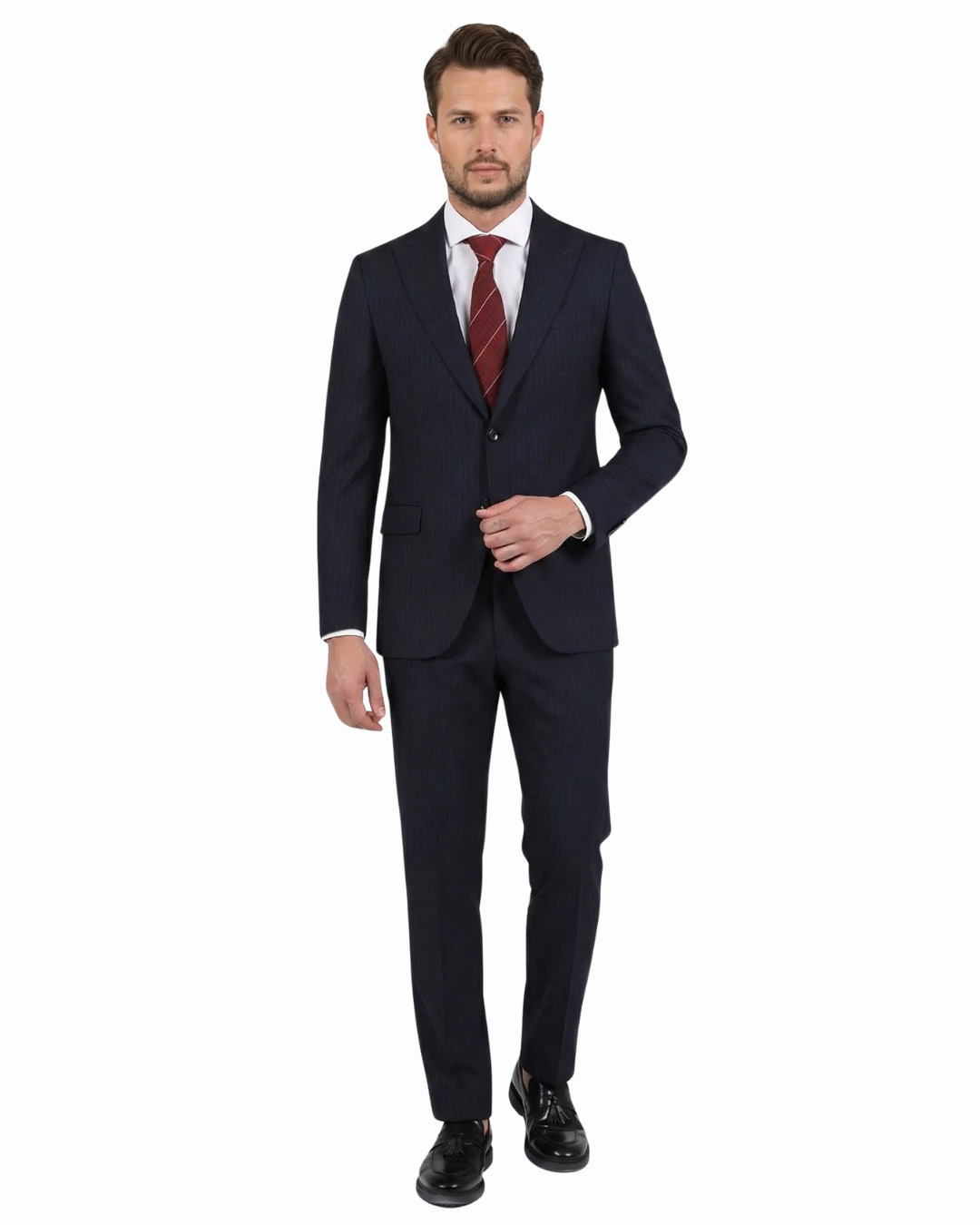 Di'nucci Slim Fit Navy With Purple Pinstripe Peak Lapel Wool Blend Suit