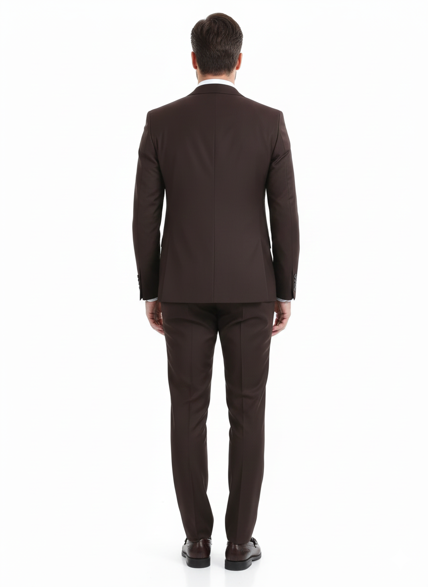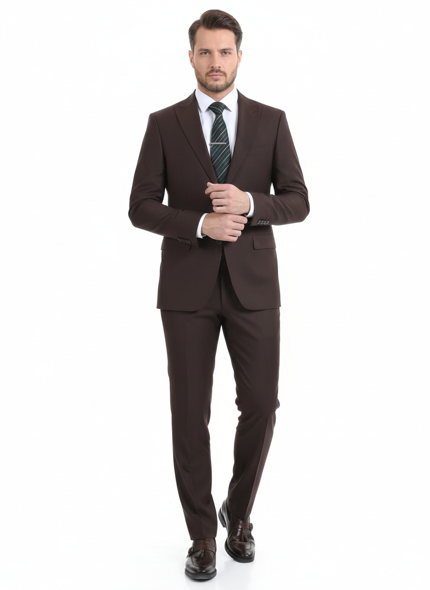 Di'nucci Slim Fit Solid Chocolate Brown Peak Lapel Wool Blend Suit