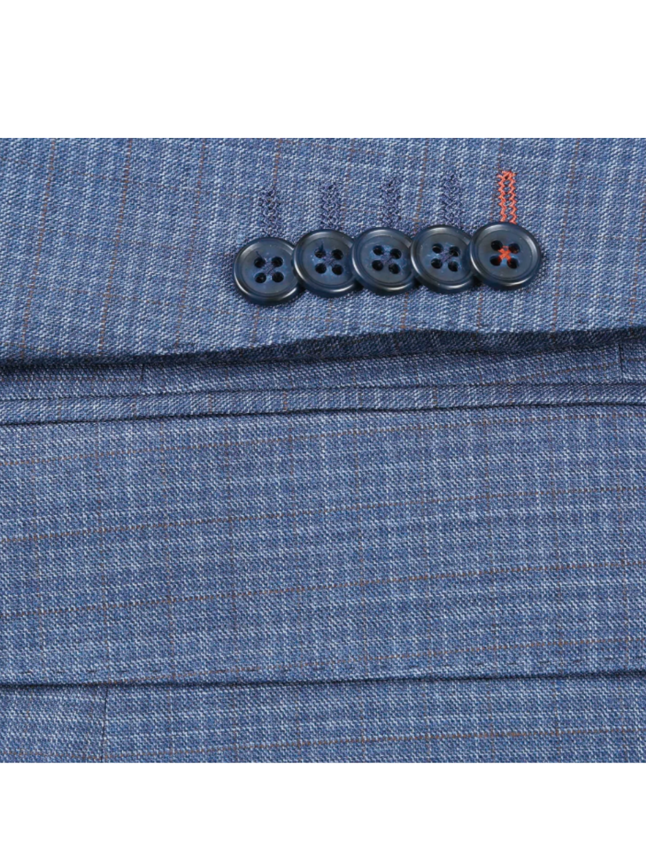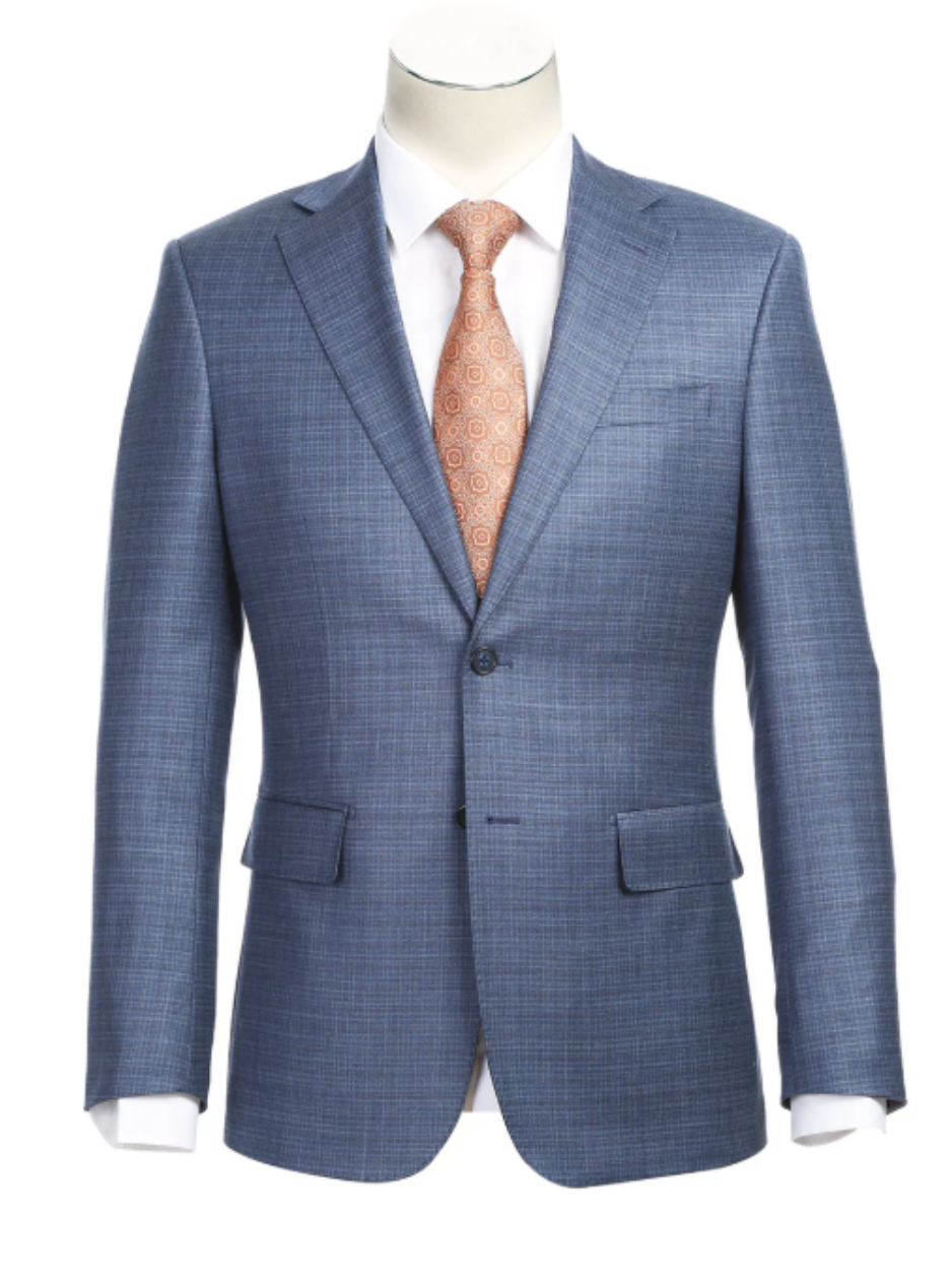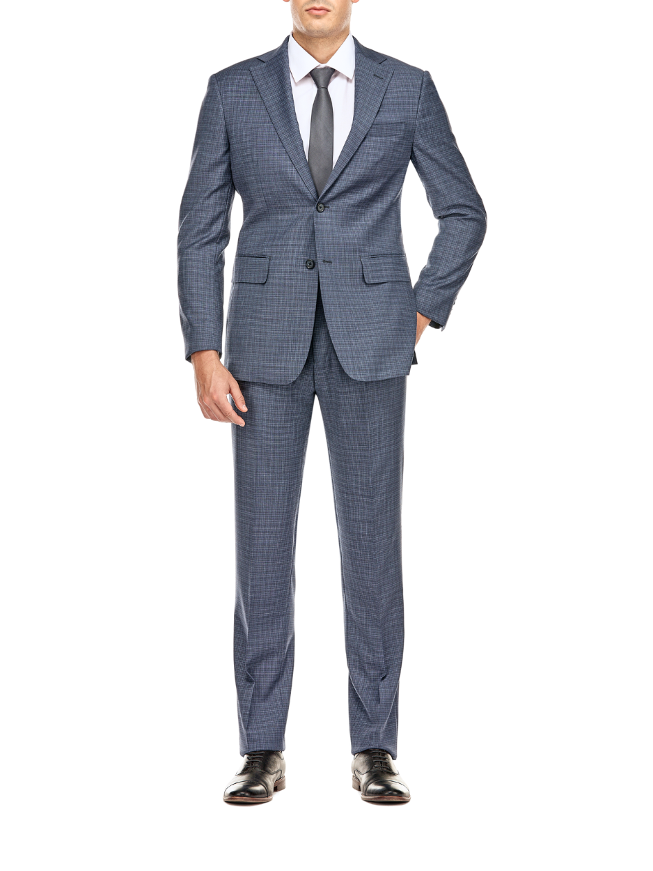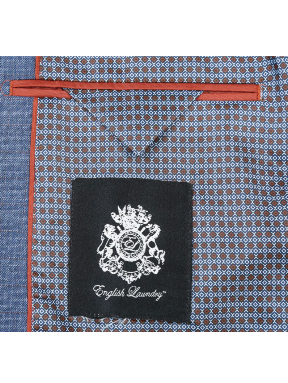English Laundry Blue Check Slim Fit Notch Lapel Wool Blend Stretch 2 Button Suit
