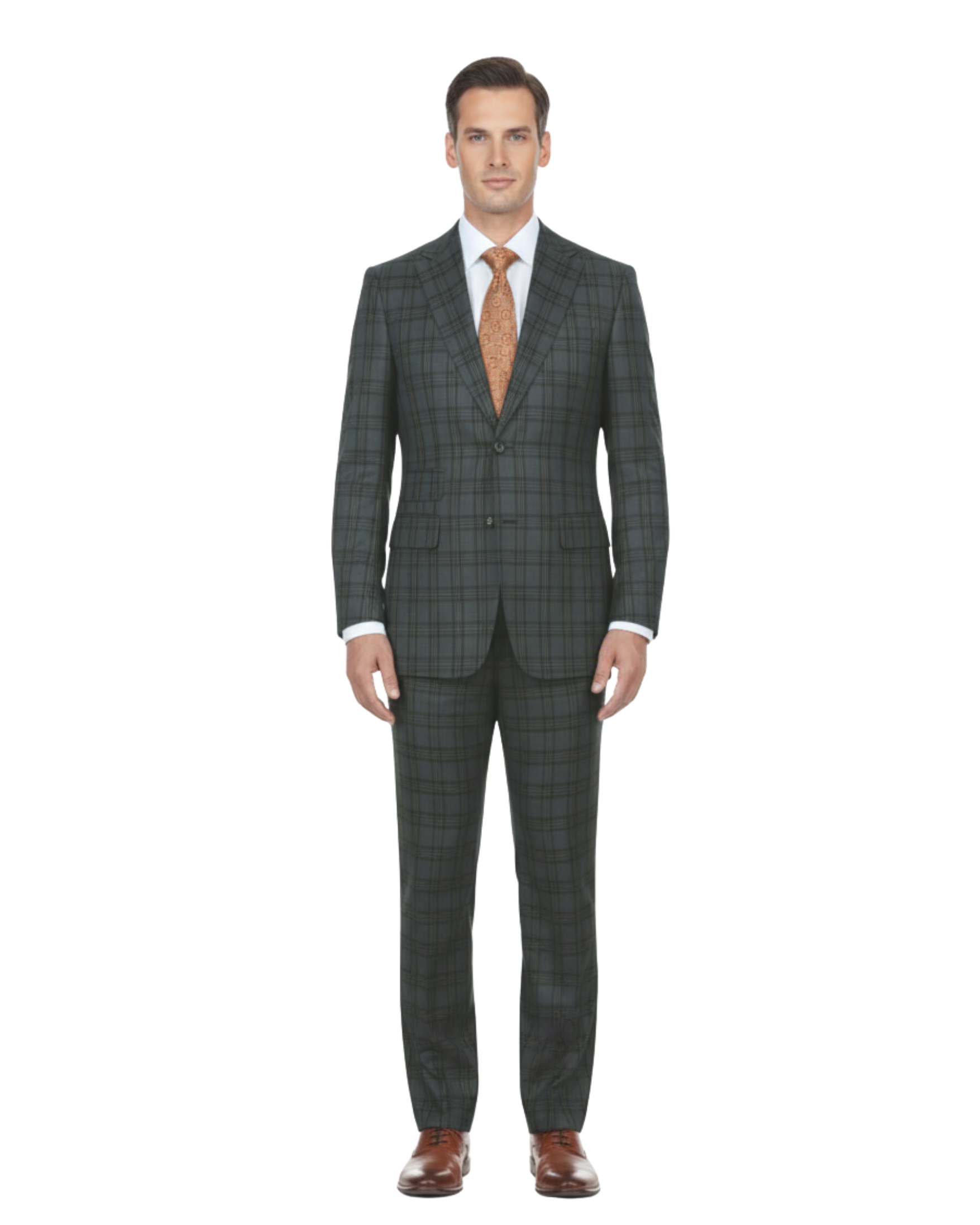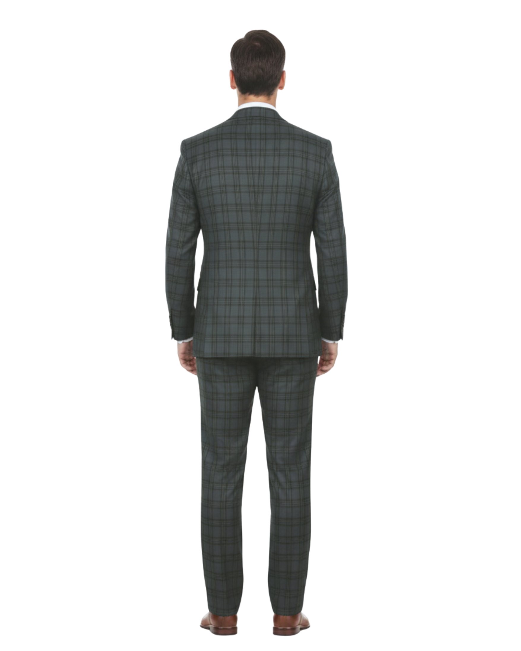 English Laundry Mens Gray With Green Plaid Slim Fit Peak Lapel 2 Button Stretch Suit