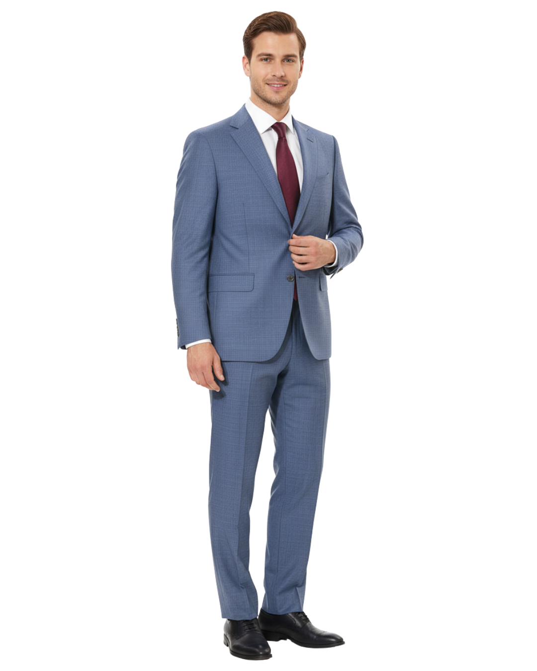 This elegant modern fit blue wool, linen, silk blend suit features canvassed construction and fine tailoring. It is the perfect... Read more