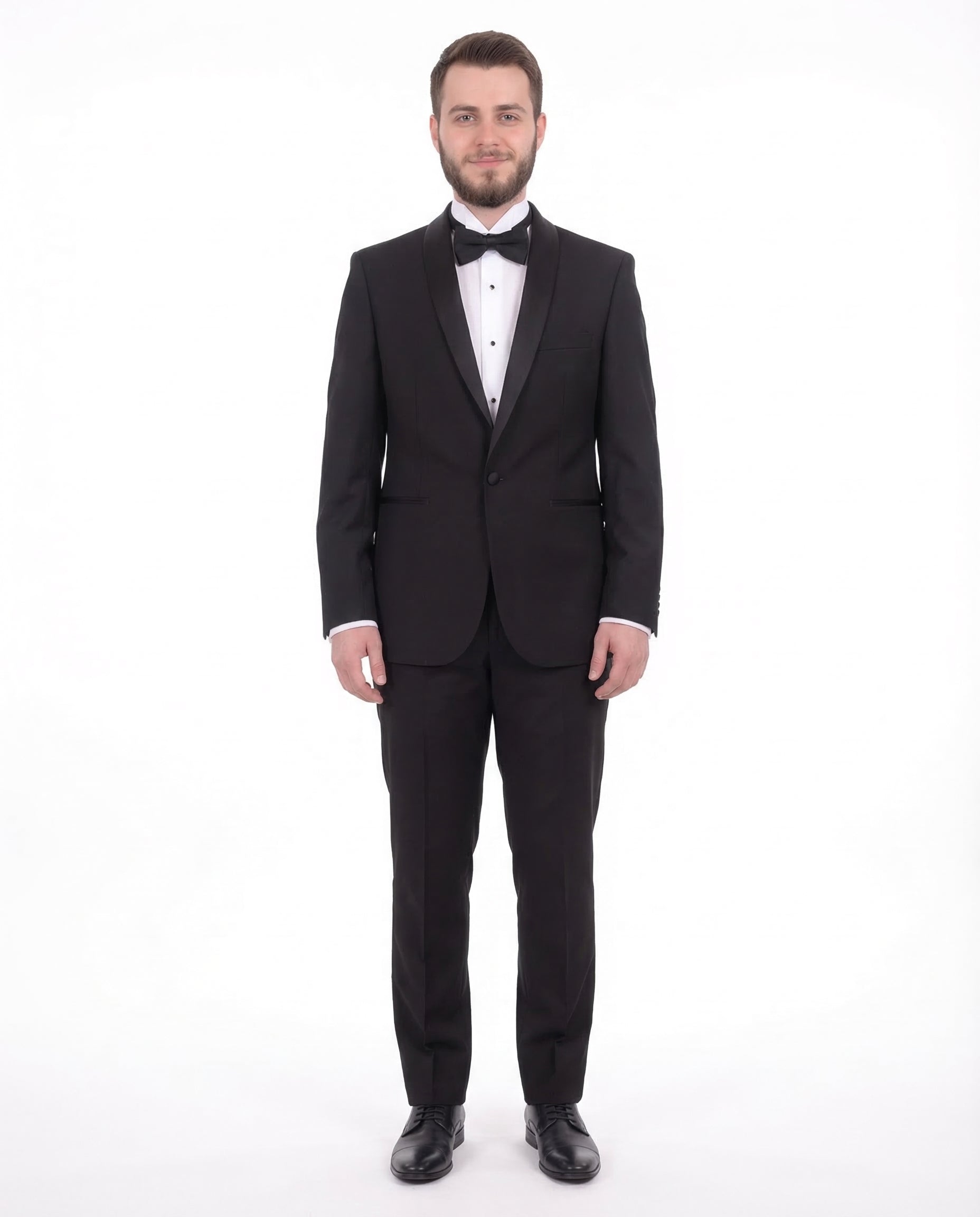 Gino Vitale Slim Fit Solid Black One Button Tuxedo Suit With Satin Shawl Lapels