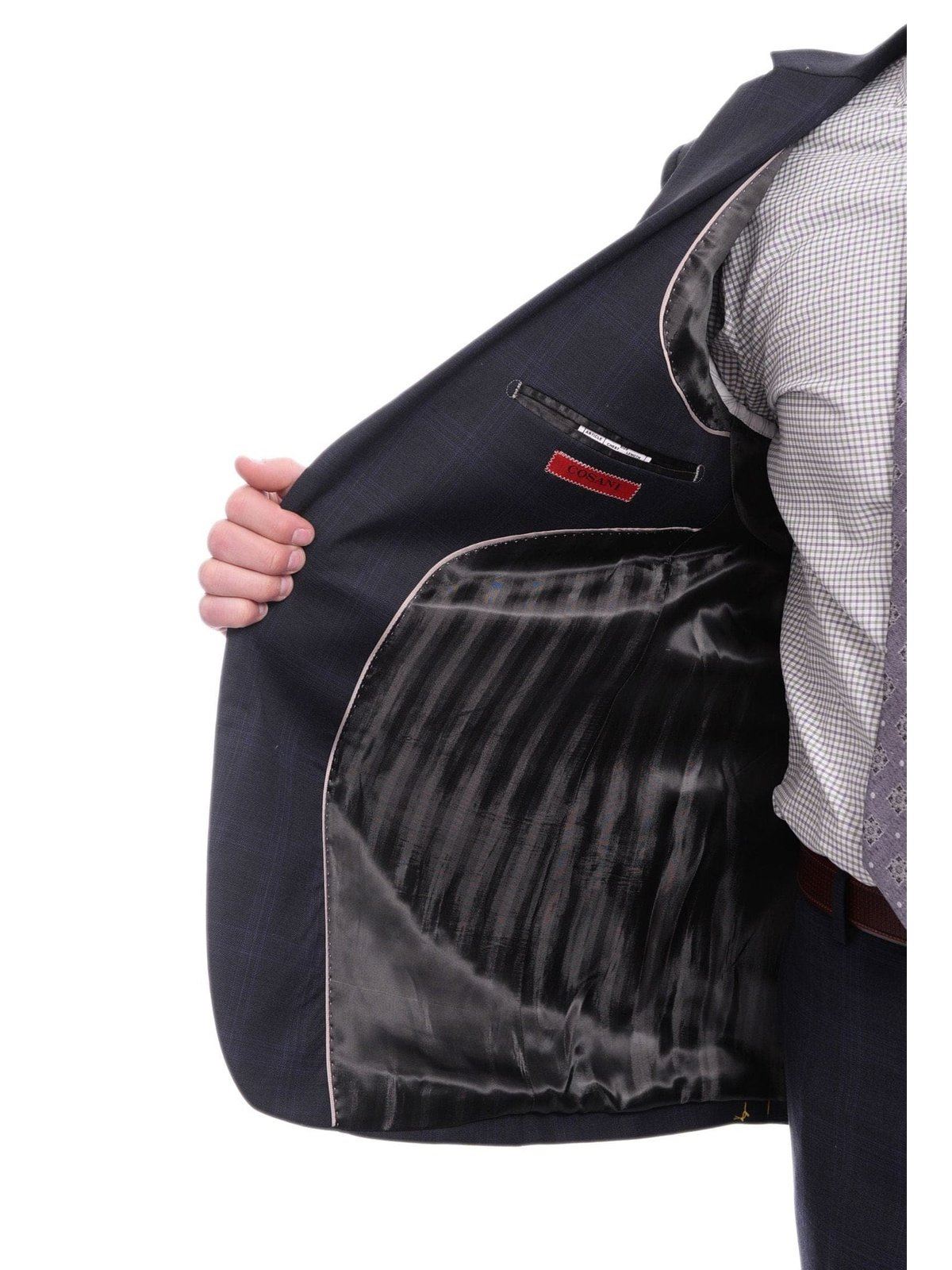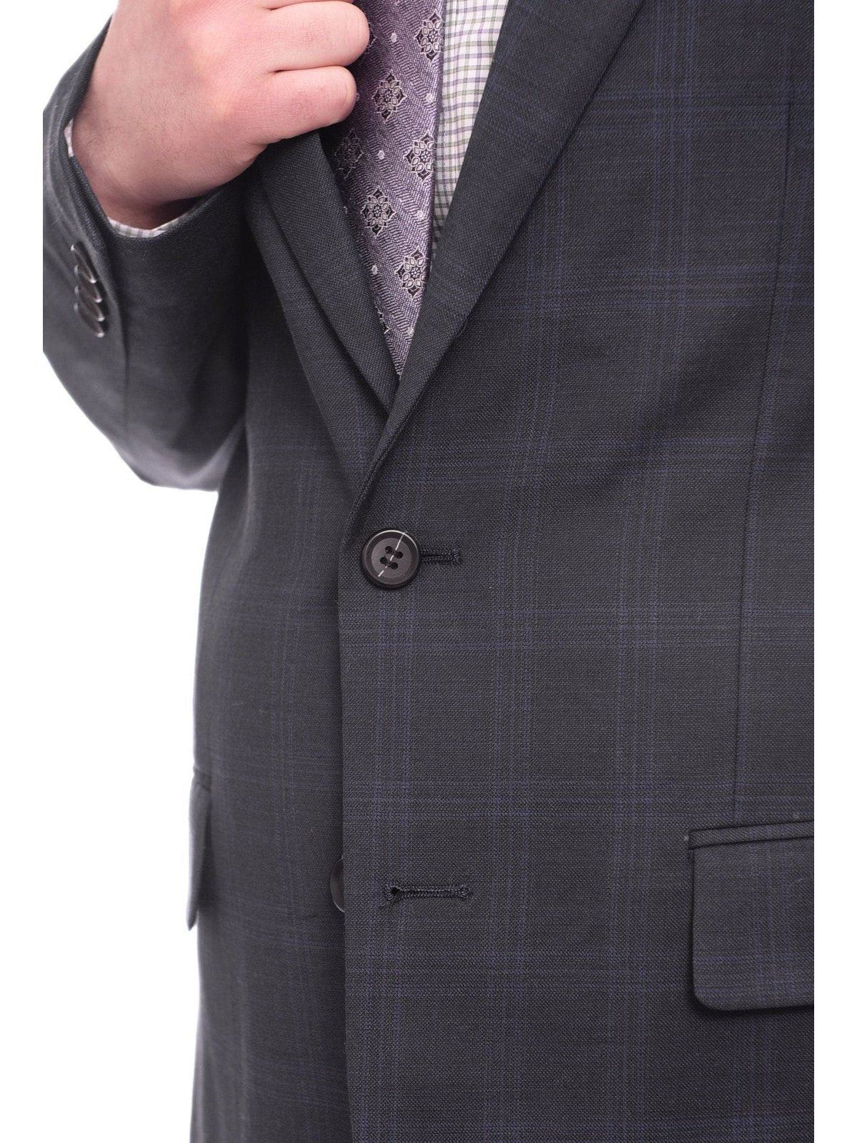 Giorgio Cosani Classic Fit Subtle Blue Windowpane Two Button Stretch Wool Suit