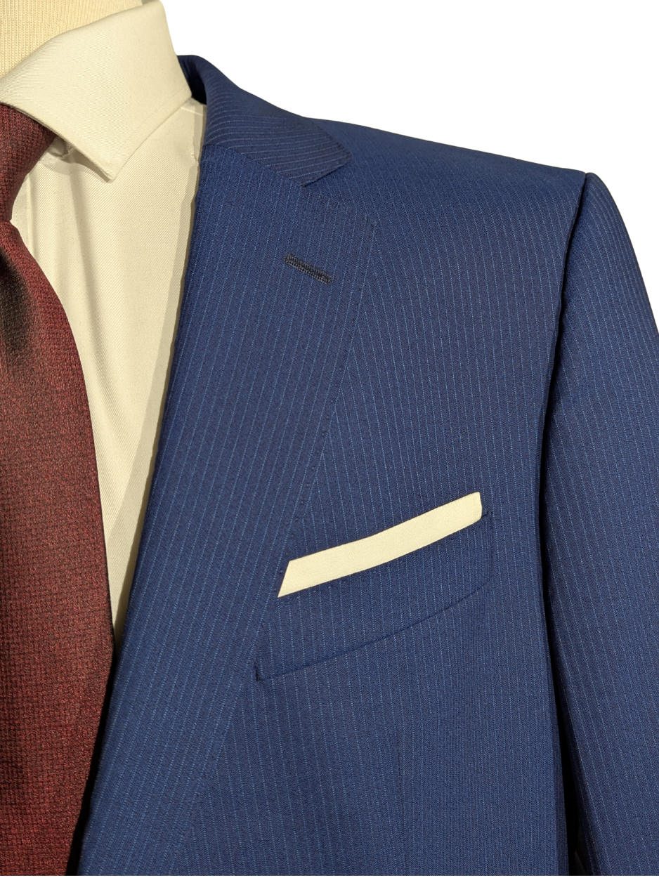 Hugo Boss Blue Pinstripe Slim Fit Notch Lapels 2-Button Wool Silk Suit - 46R