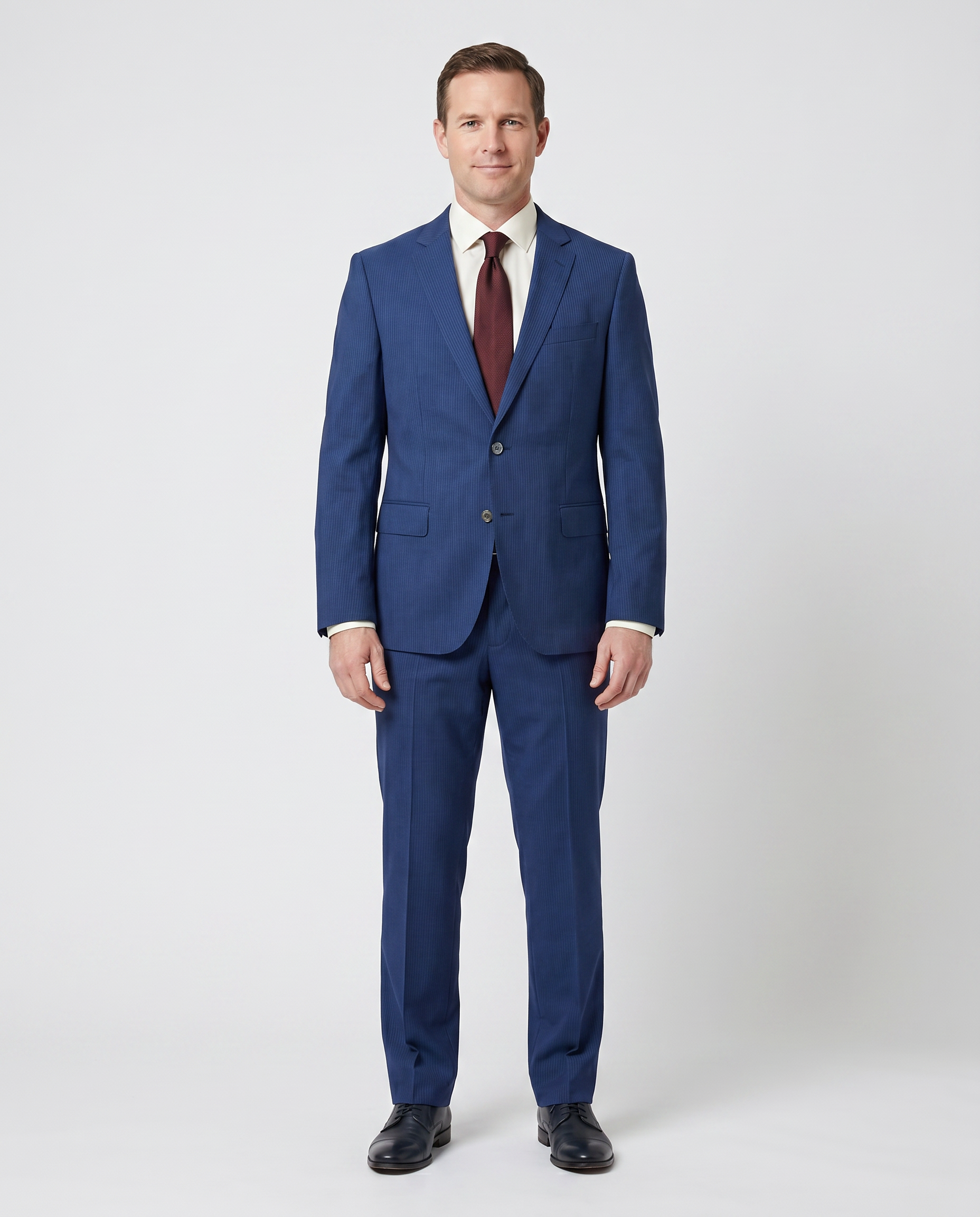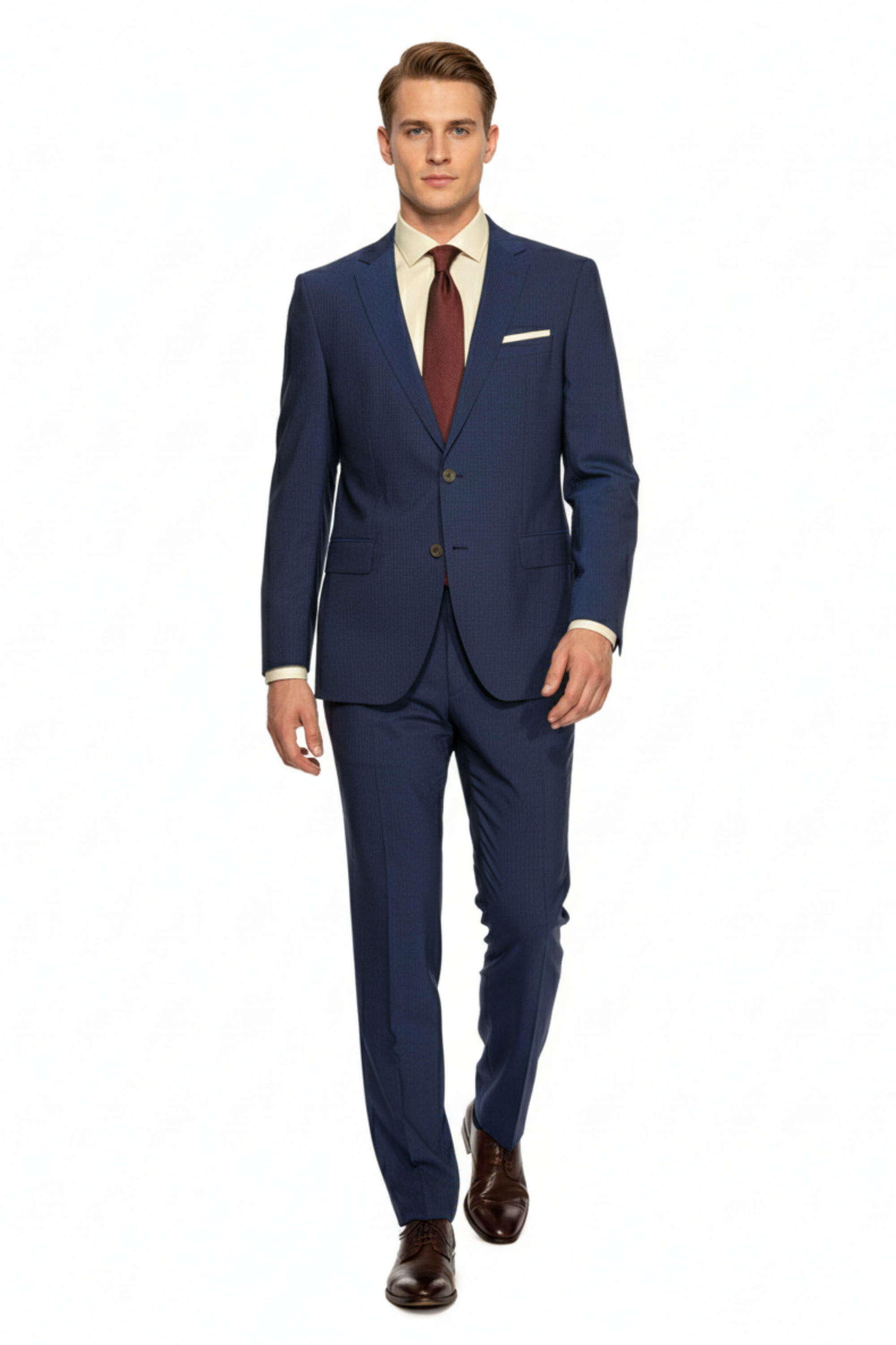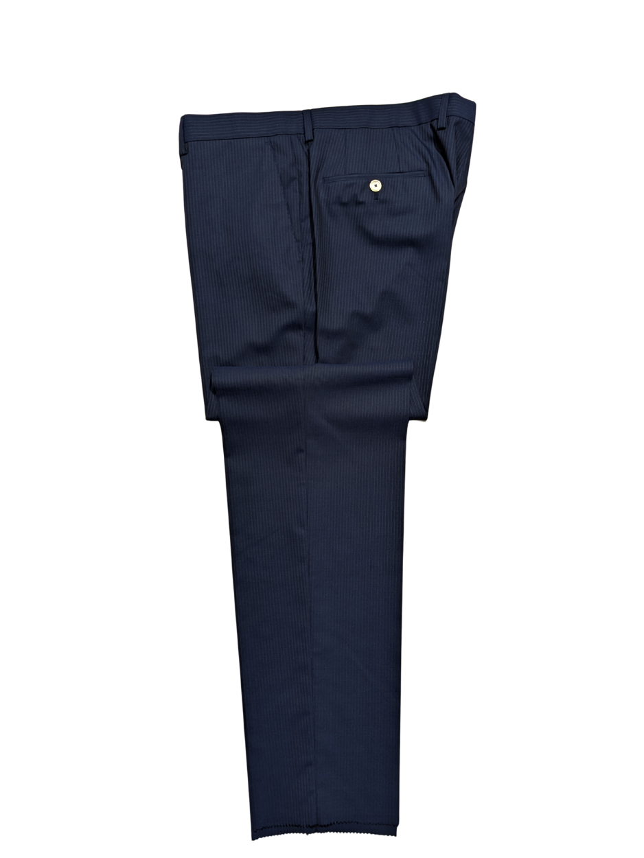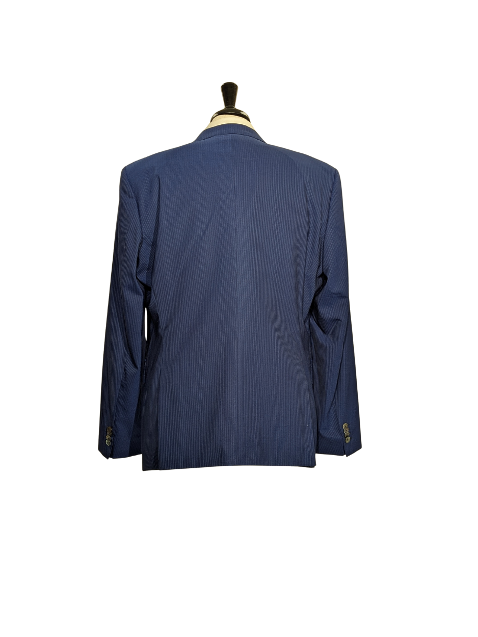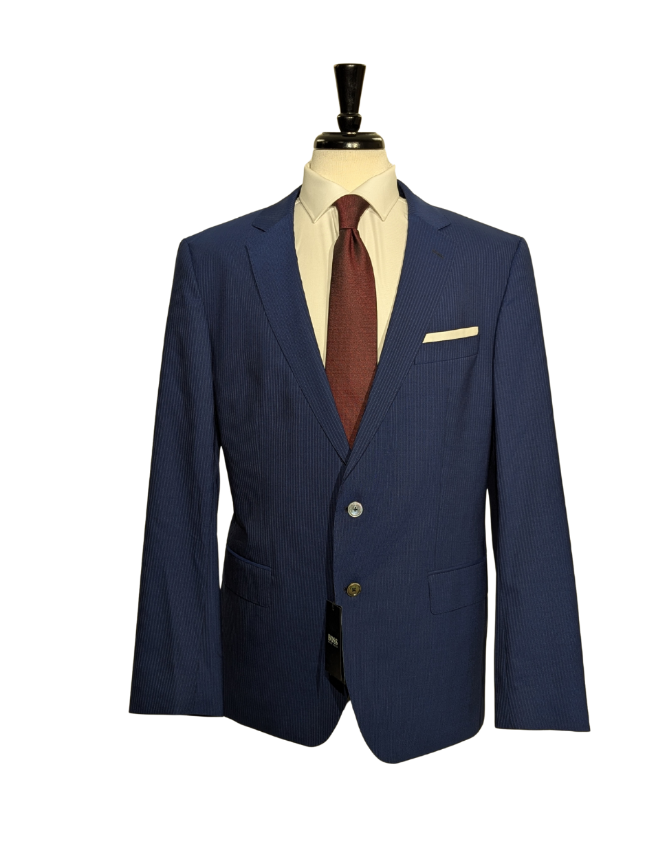 Refined and versatile, this Hugo Boss 2-button suit features a classic blue pinstripe pattern woven into high-quality wool. This two-button jacket offers a contemporary edge while maintaining timeless appeal. Finished with notch lapels and sharp tailoring, it's ideal for business, formal events, or refined everyday wear.