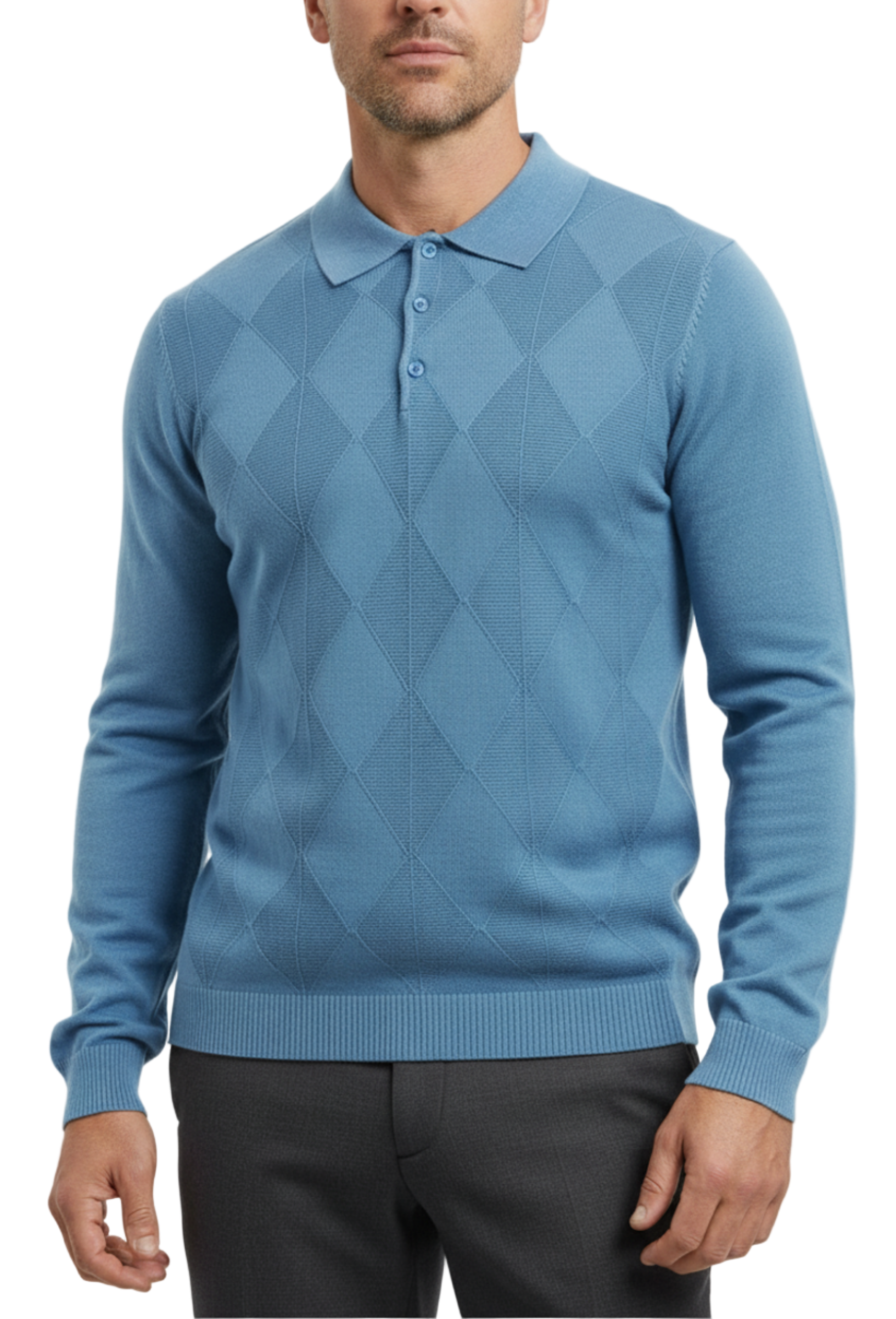 Lavane N.Y. Mens Sky Blue Diamond Knit Polo Sweater Shirt