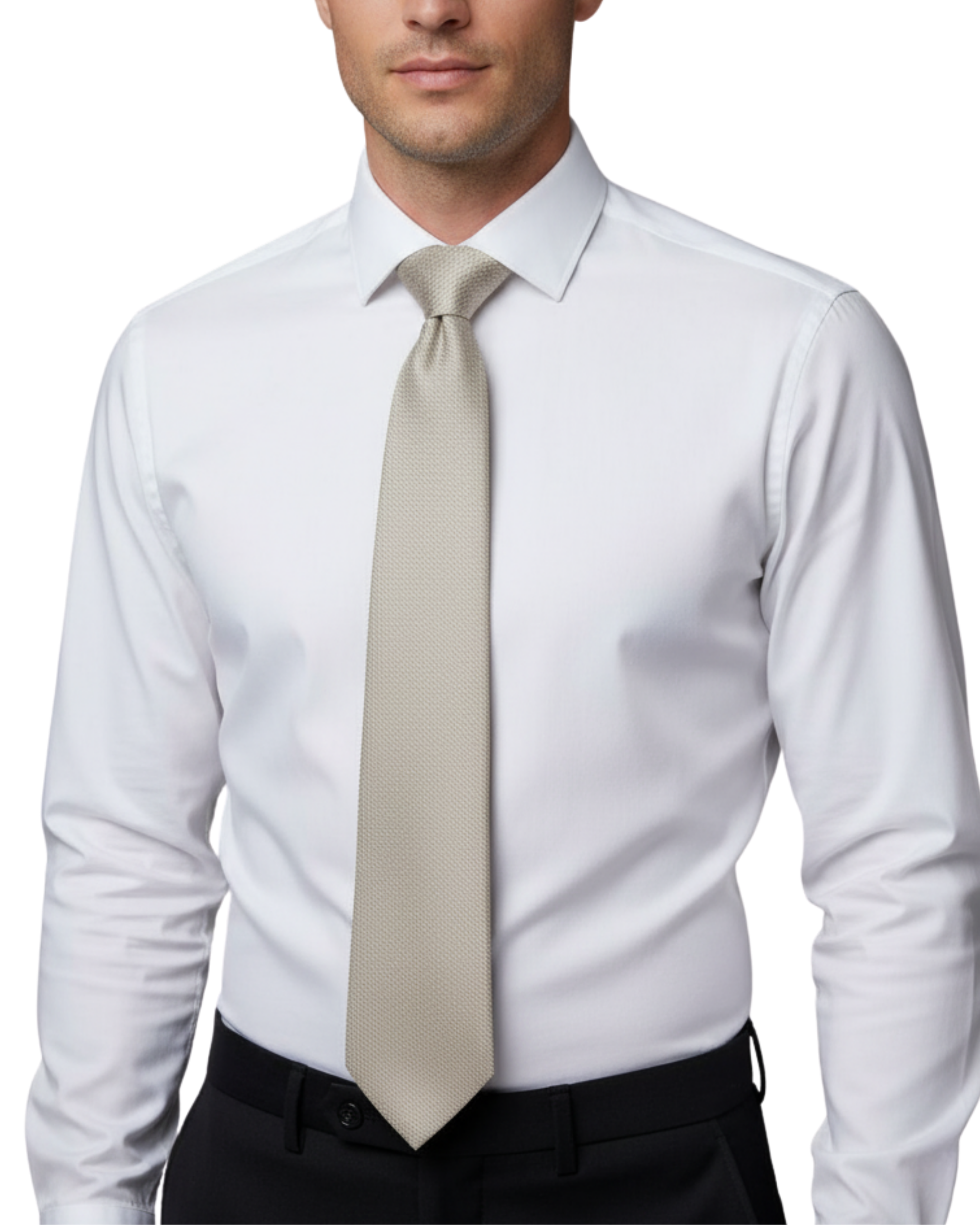 This luxurious cream tie is crafted in Italy from 100% pure silk grenadine, instantly elevating your formal or business look.... Read more