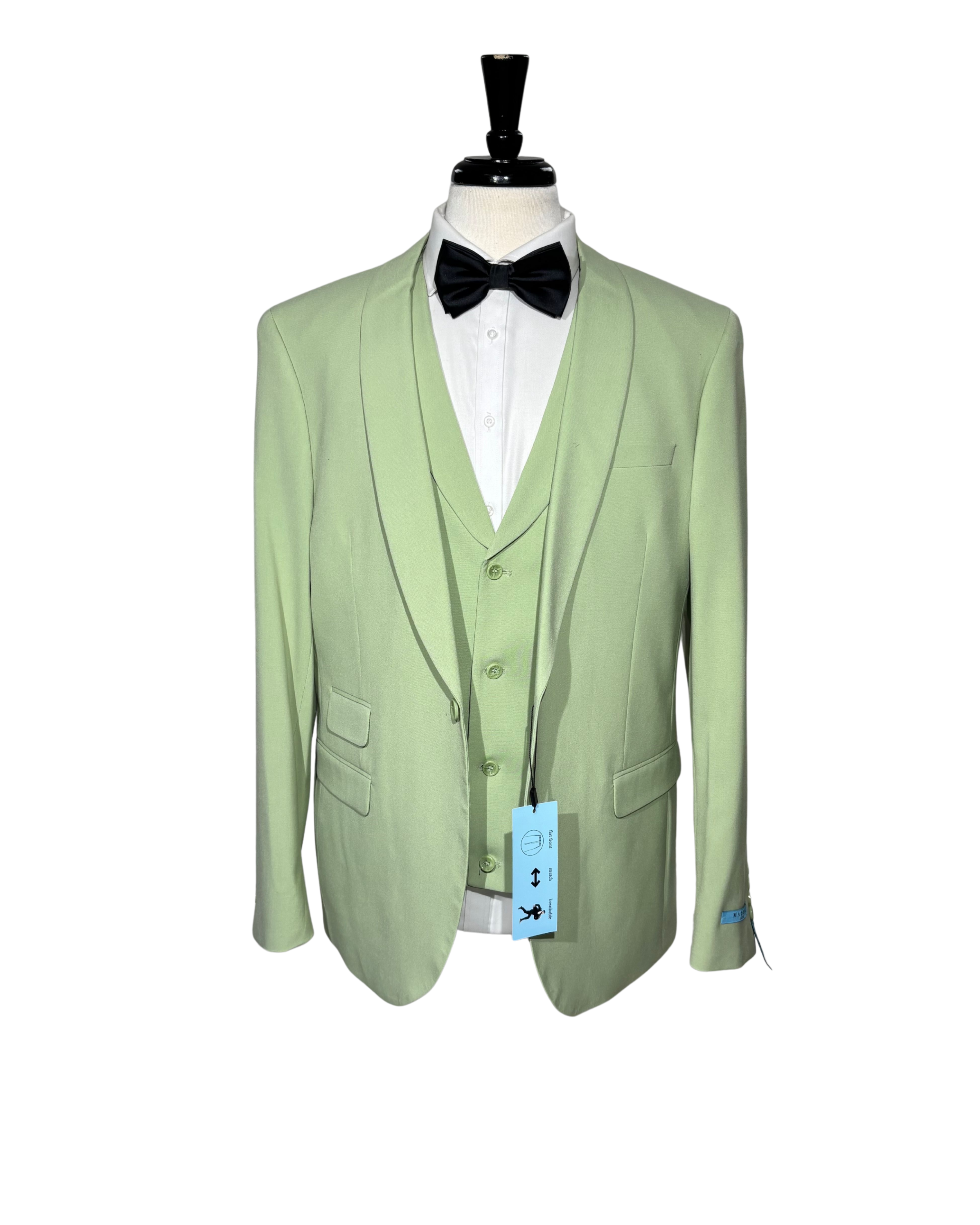 Malone Mens Slim Fit Solid Green Stretch 3 Piece Tuxedo Suit With Shawl Lapels