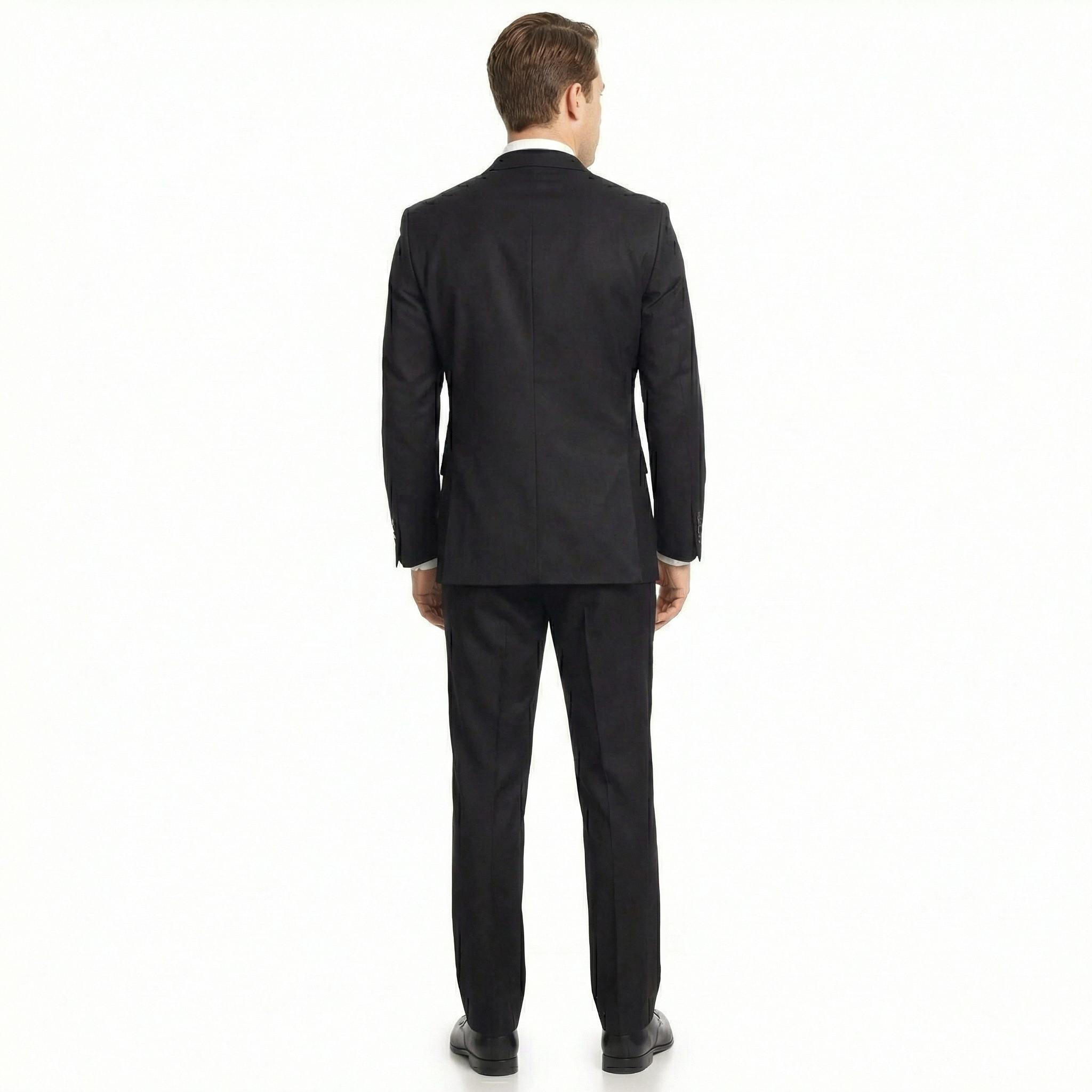 Mens Classic Fit Two Button 100% Wool Wrinkle Resistant Suit - Solid Black