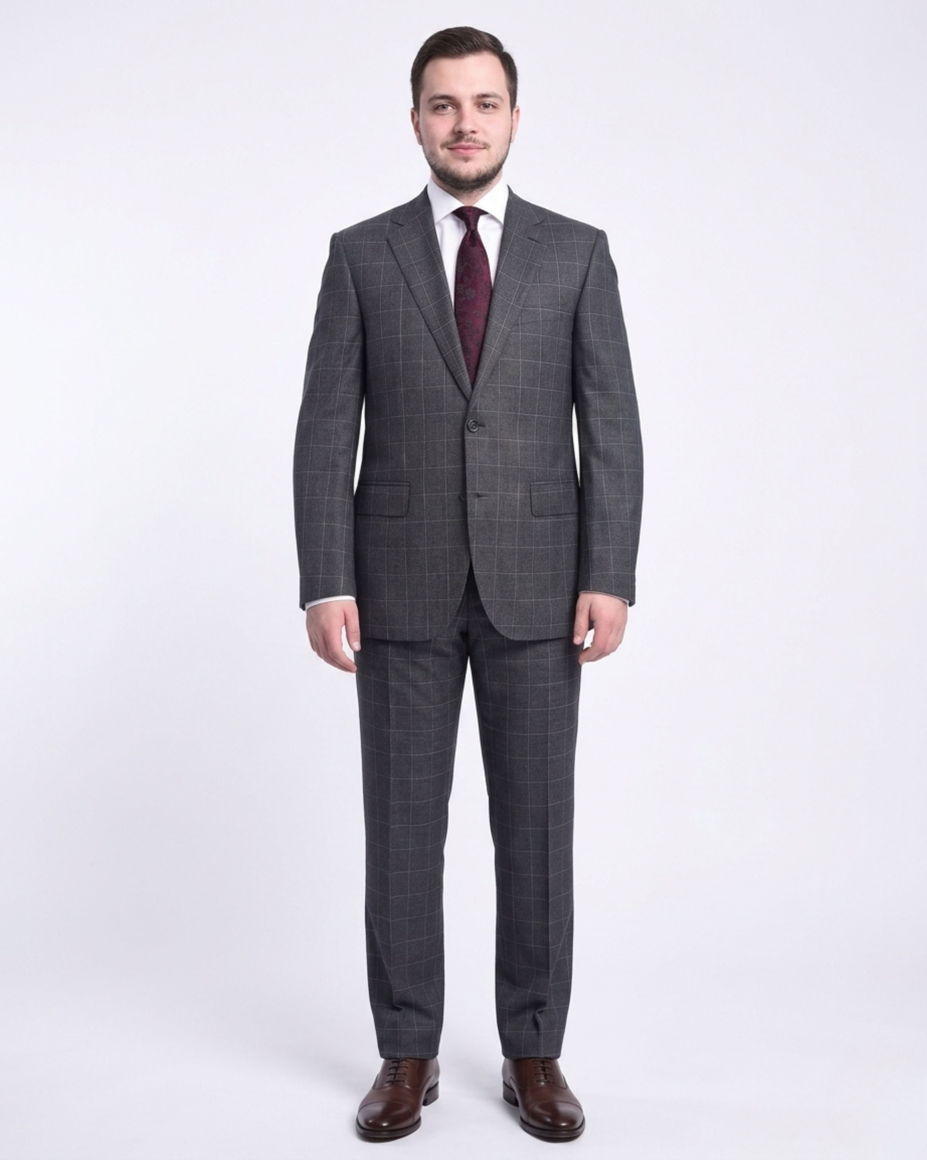 Men's Napoli Classic Fit Charcoal Gray Plaid Two Button Half Canvassed Wool Suit