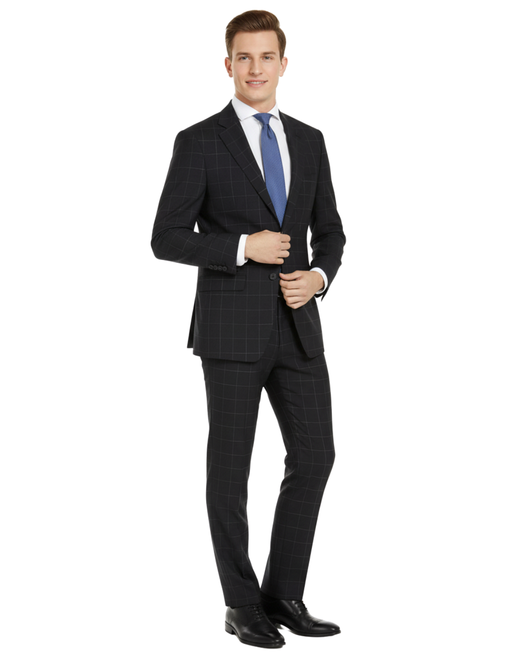 Men's Calvin Klein Navy Blue Windowpane Slim Fit Wool Suit