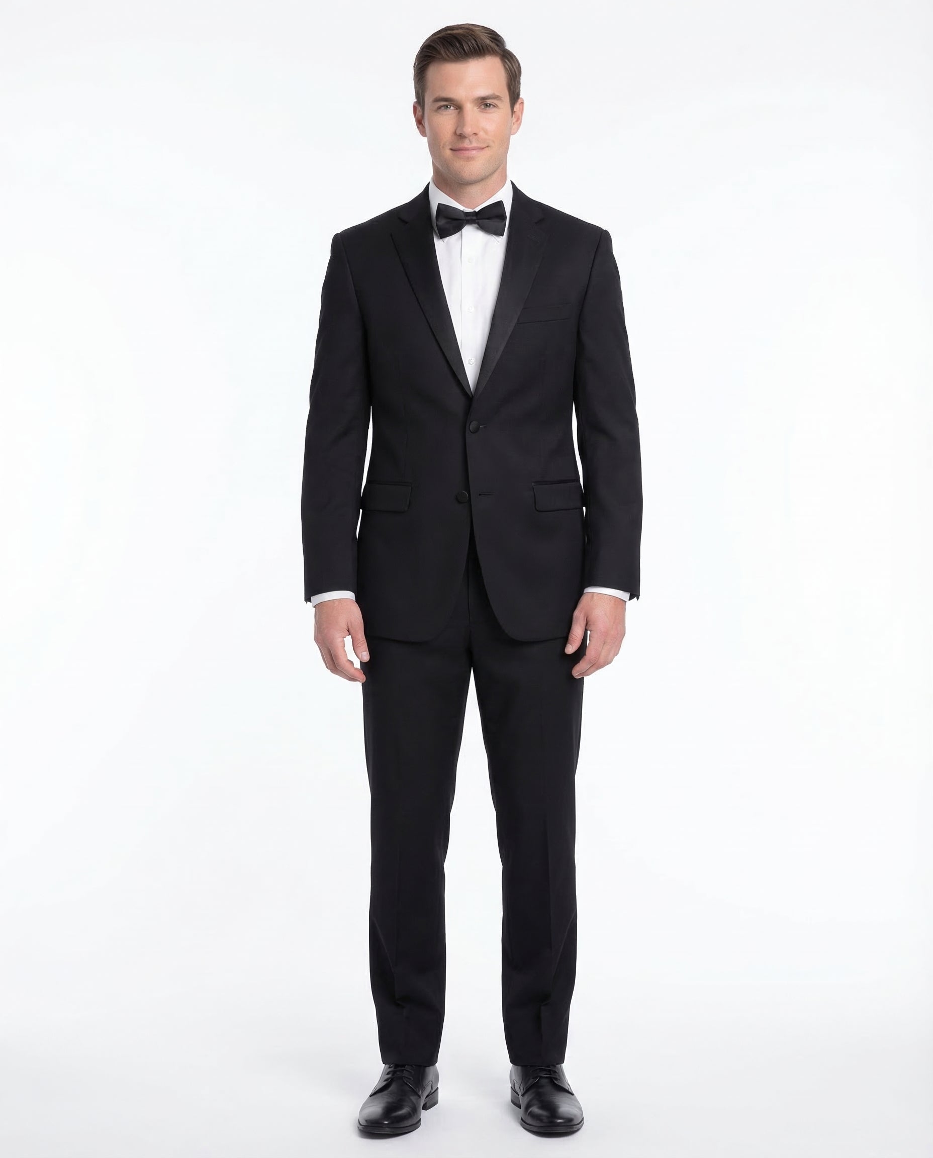 Men's Classic Fit Solid Black Two Button Notch Lapels 100% Wool Formal Tuxedo Suit