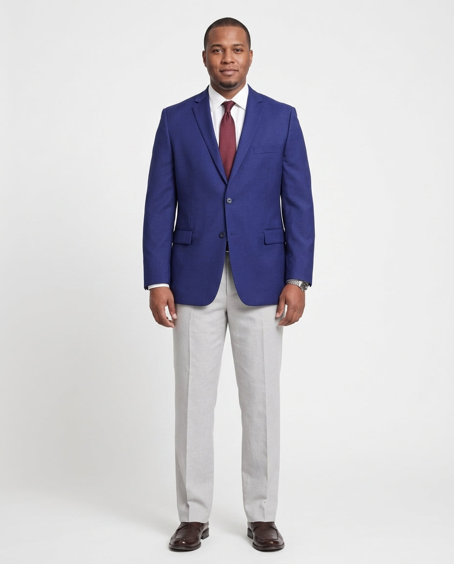 Mens Classic Fit Solid Royal Blue Two Button Wool Blazer Sportcoat