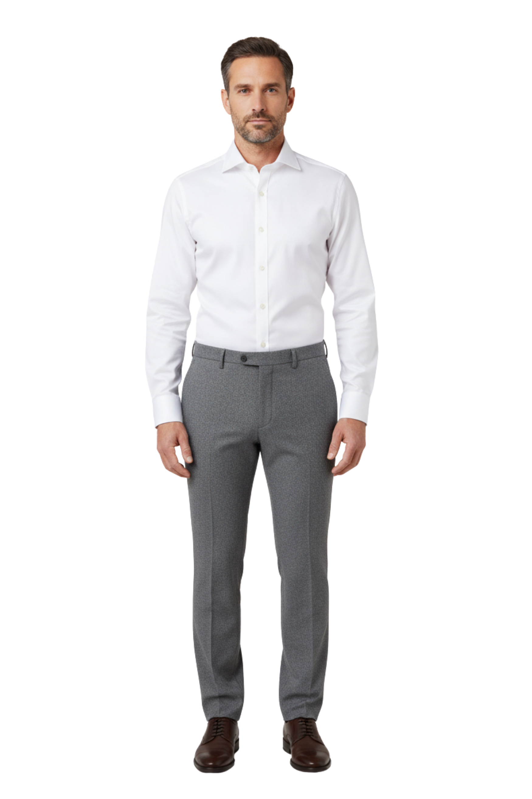 Mens Extra Slim Fit Solid White Twill Spread Collar Non Iron Cotton Dress Shirt