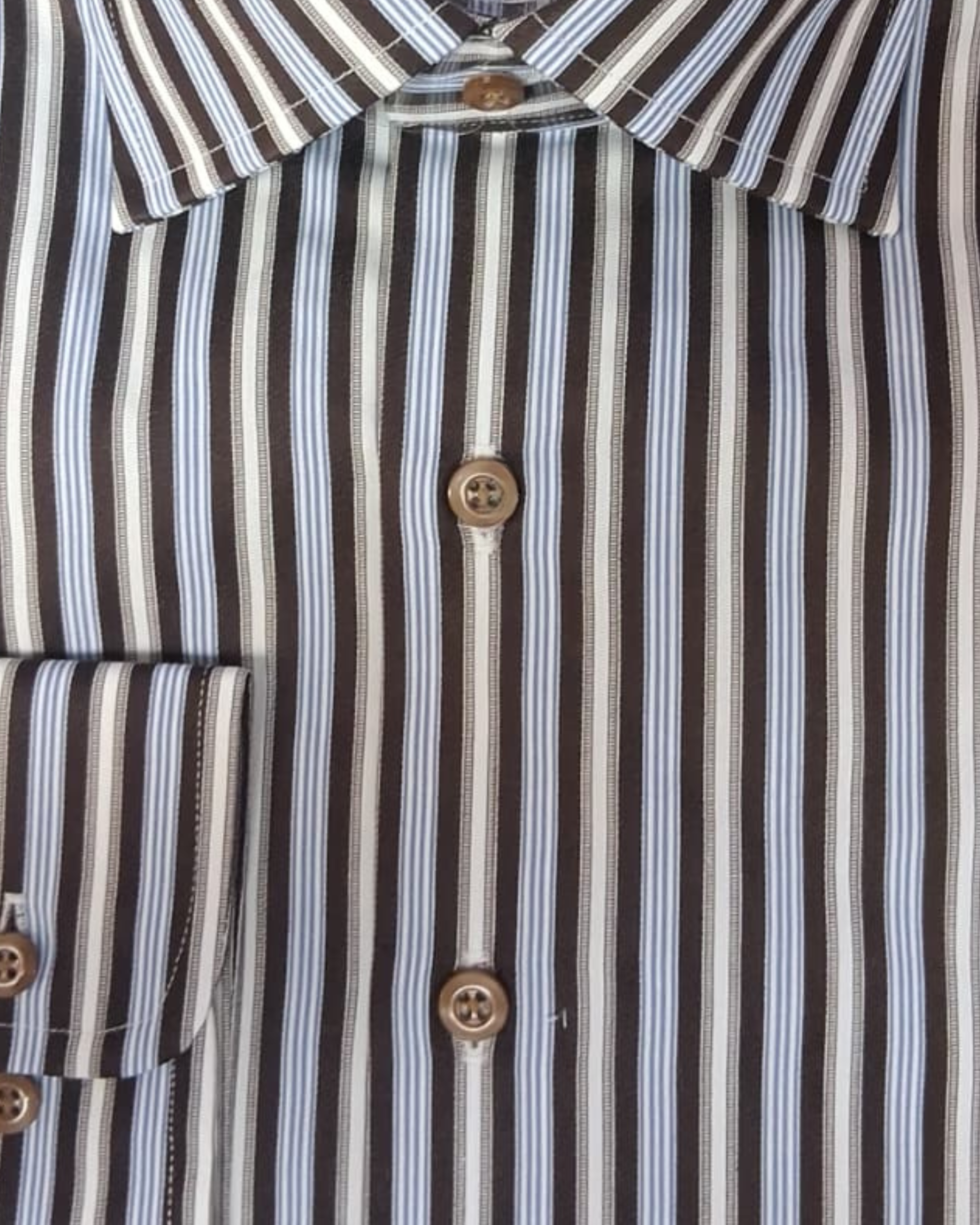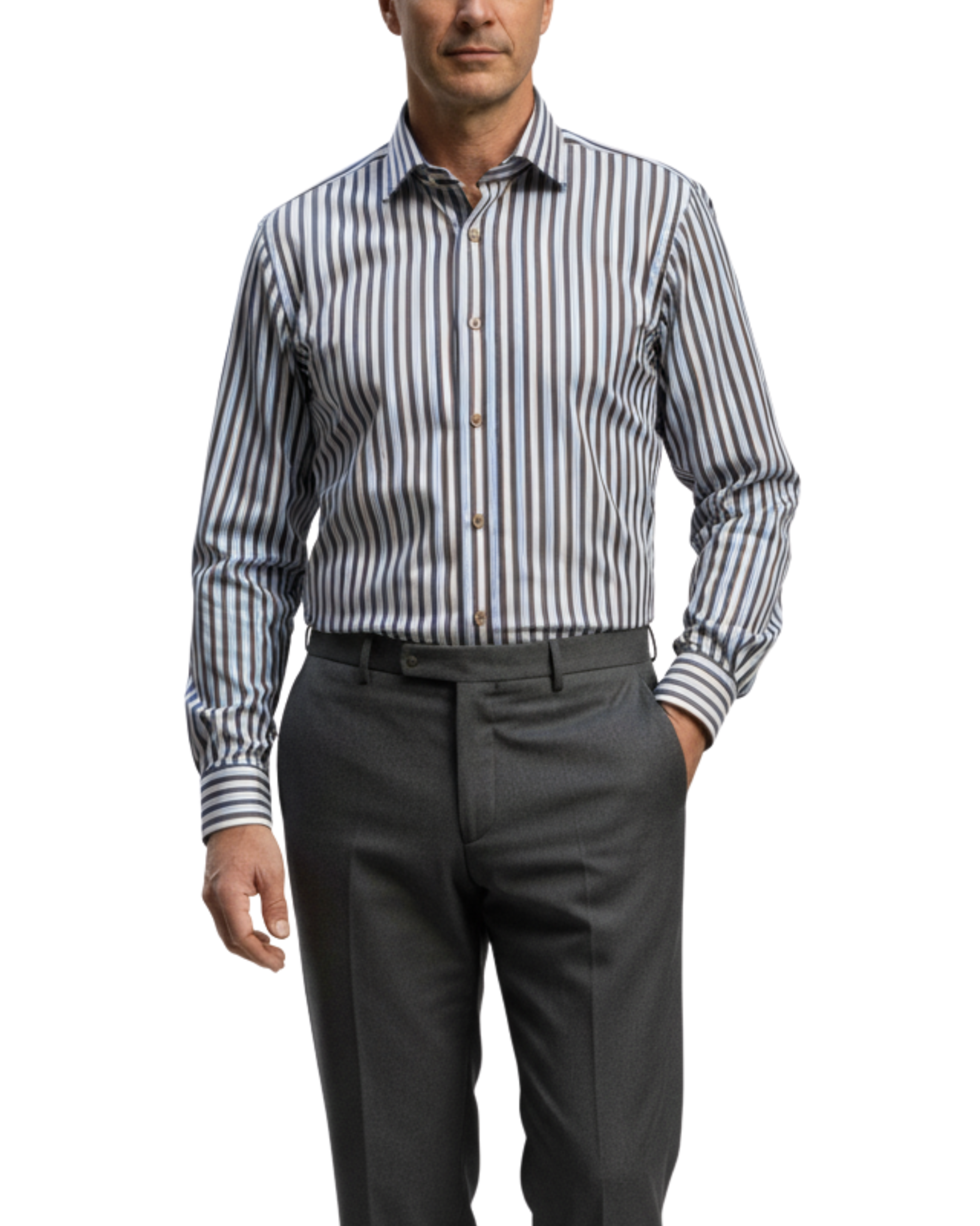 Proper Shirtings Stripe Brown and Blue Contemporary Fit Cotton Spread Collar Wrinkle Free Dress Shirt