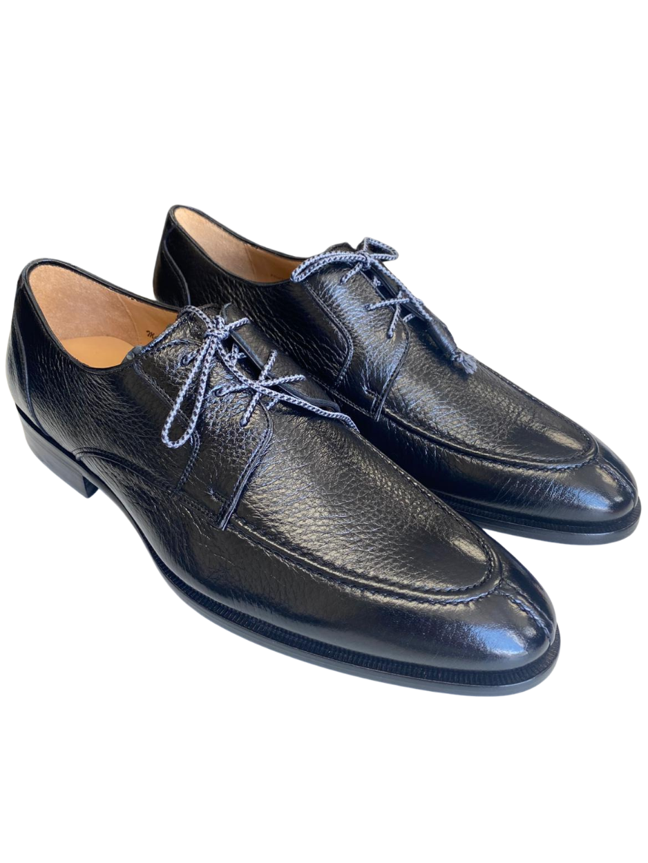 Mezlan Fratello Black Pebbled Leather Apron Toe Derby Dress Shoes