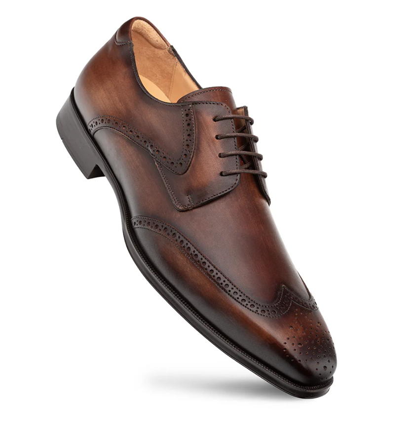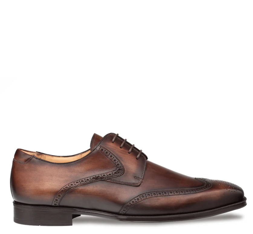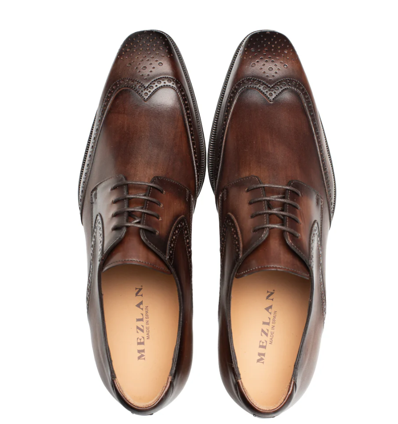 Mezlan Tasso Chesnut Leather Wingtip Derby Dress Shoes