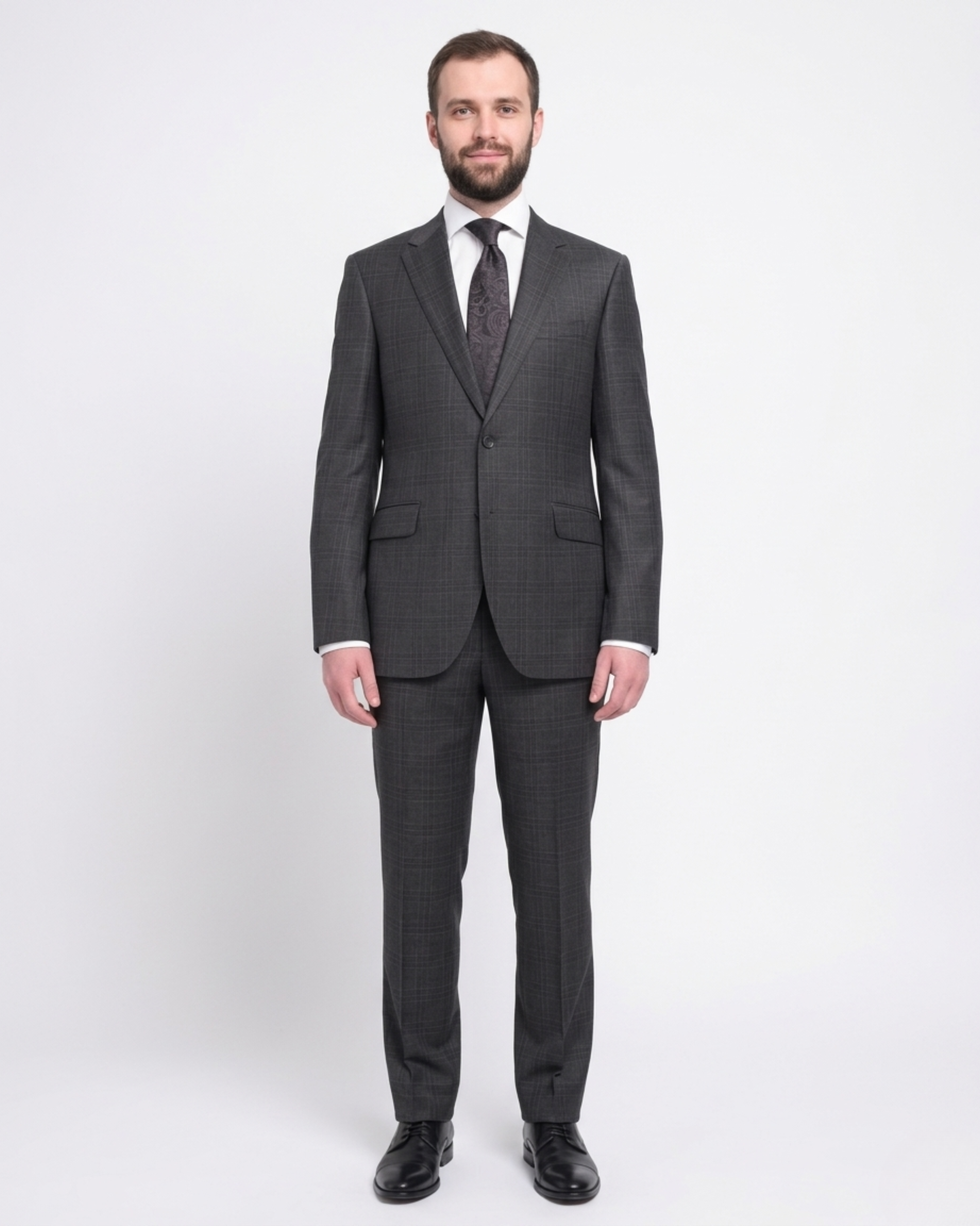 Napoli Classic Fit Charcoal Gray Plaid Half Canvassed Super 150s Wool Suit
