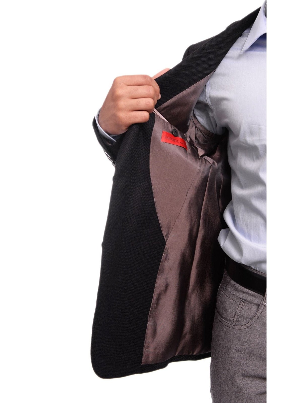 Napoli Slim Fit Black Basket Weave Half Cavassed Tallia Delfino Wool Blazer