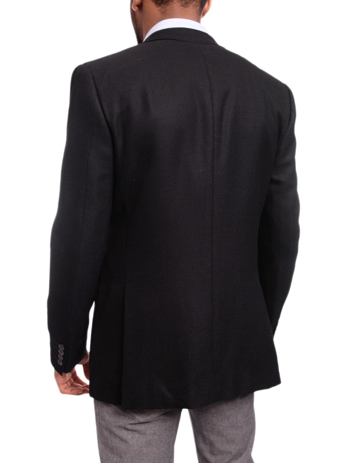 This stylish napoli men's 100% wool sportcoat has a slim fit and is suitable for year round wear. With it's two button closure and black color, this is a classic style to add to your wardrobe. It is the perfect option to wear with a dress shirt and slacks for work, or with jeans and a tshirt for a fashionable yet casual look.