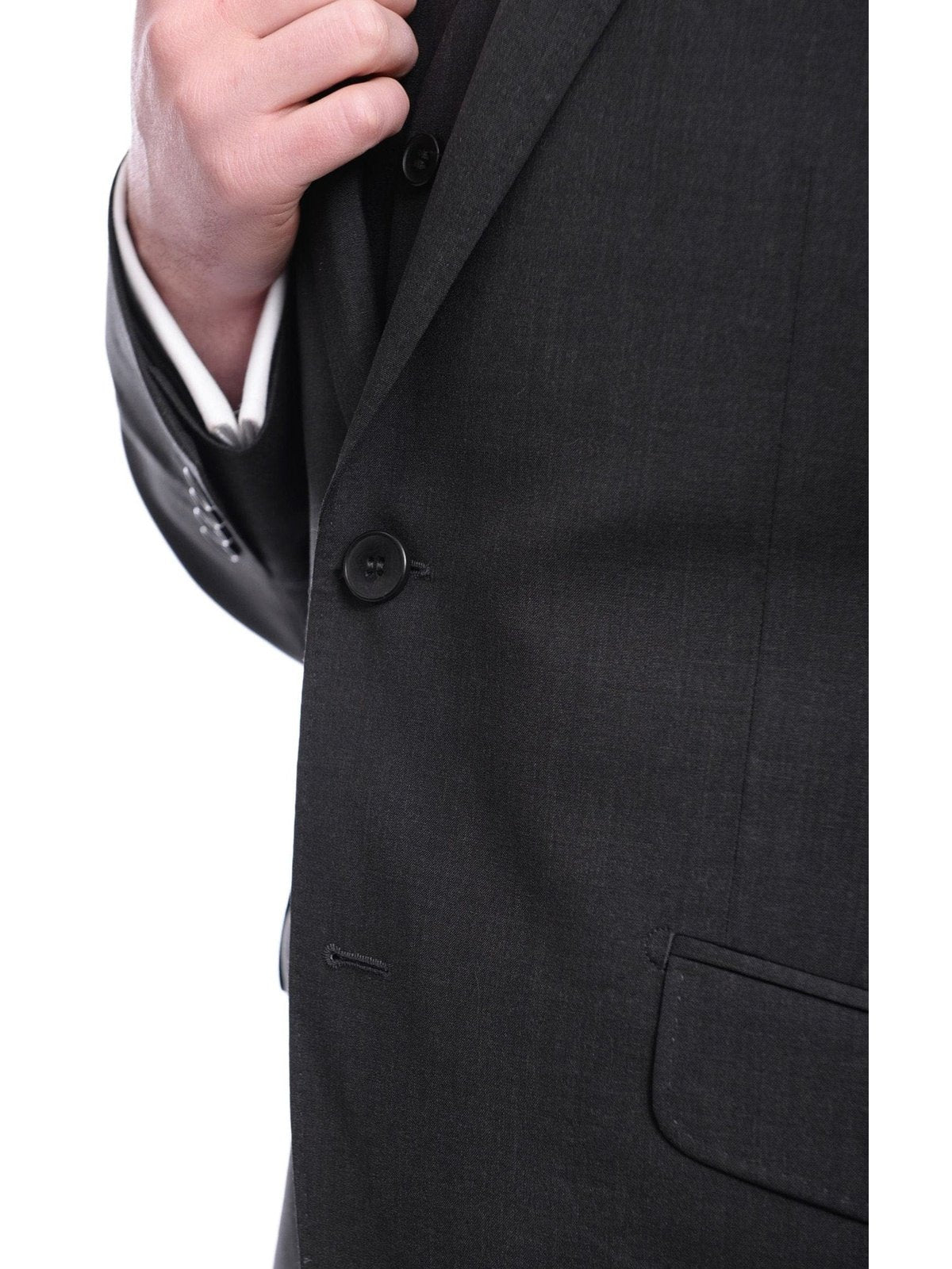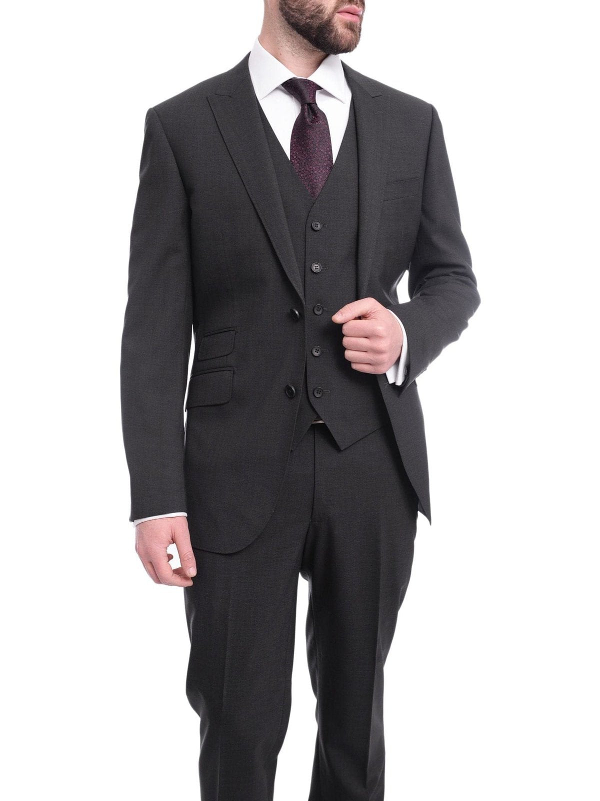 Napoli Slim Fit Solid Charcoal Two Button Half Canvassed Marzotto Wool Suit