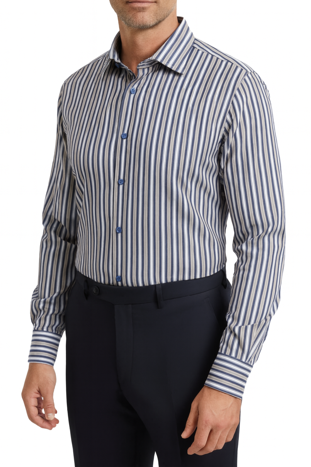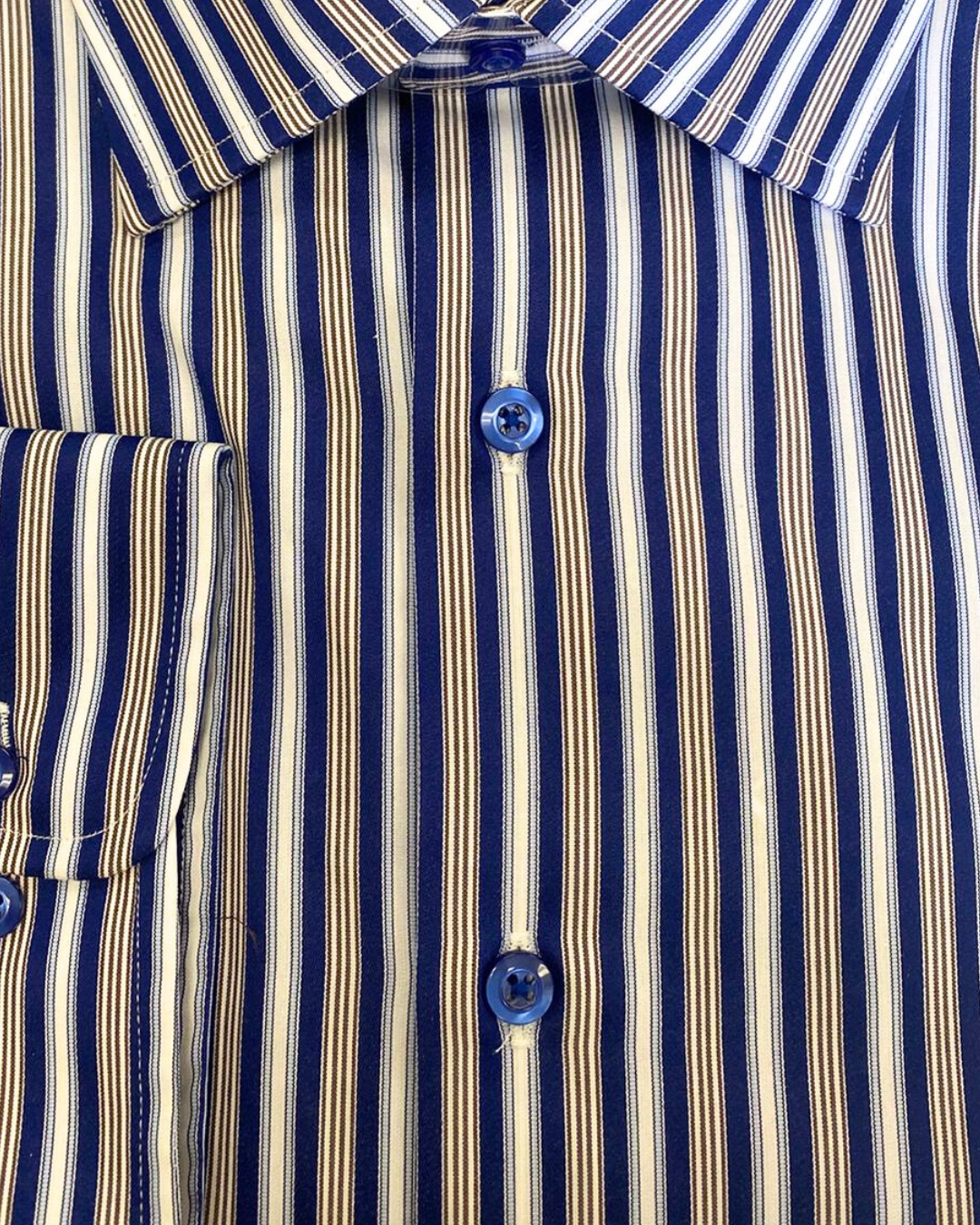 Proper Shirtings Stripe French Blue and Brown Contemporary Fit Cotton Spread Collar Wrinkle Free Dress Shirt