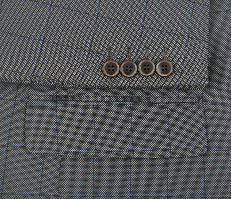 This classic fit suit delivers a timeless, professional look with its subtle gray windowpane pattern. The jacket features a two-button front, notch lapels, and flap pockets for a traditional finish. Matching flat-front trousers provide all-day comfort and an easy drape. Ideal for the office, business meetings, and formal occasions, this suit pairs effortlessly with a crisp white shirt and a patterned tie for a polished appearance.