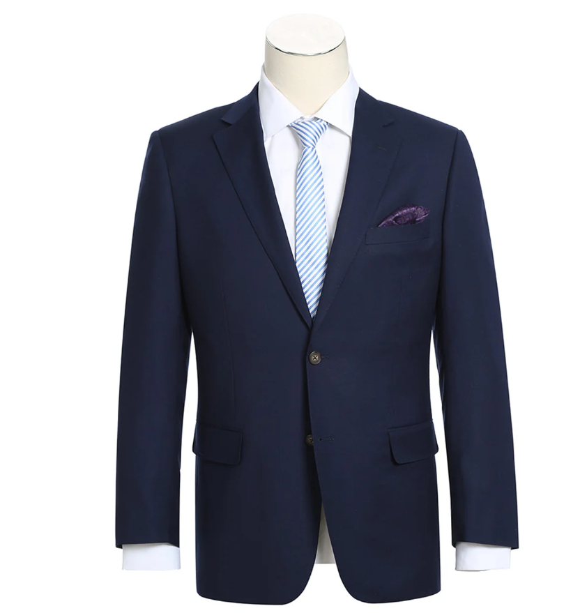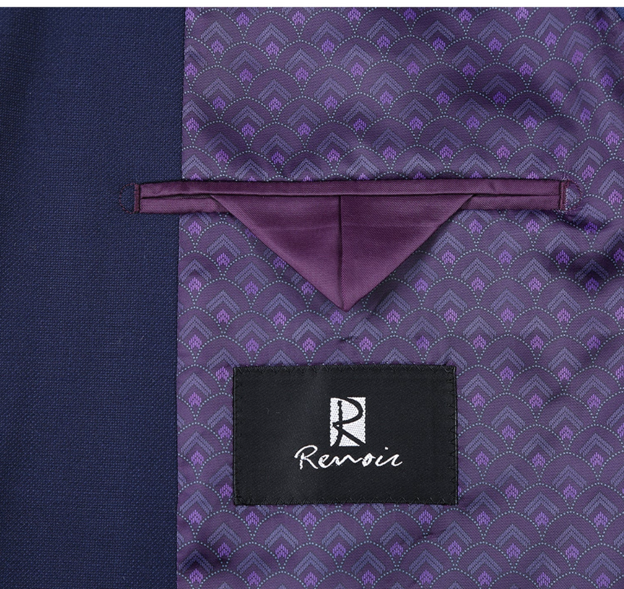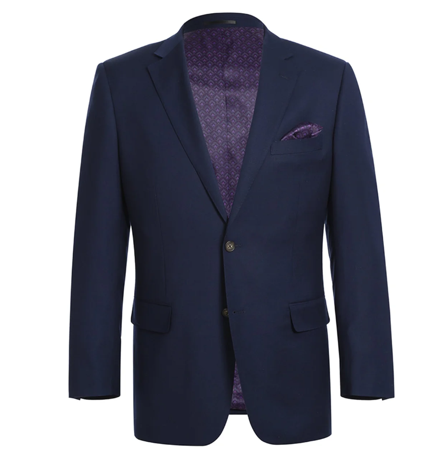 Raphael Navy Blue with Purple Lining Classic Fit Two-Button Notch Lapel Blazer