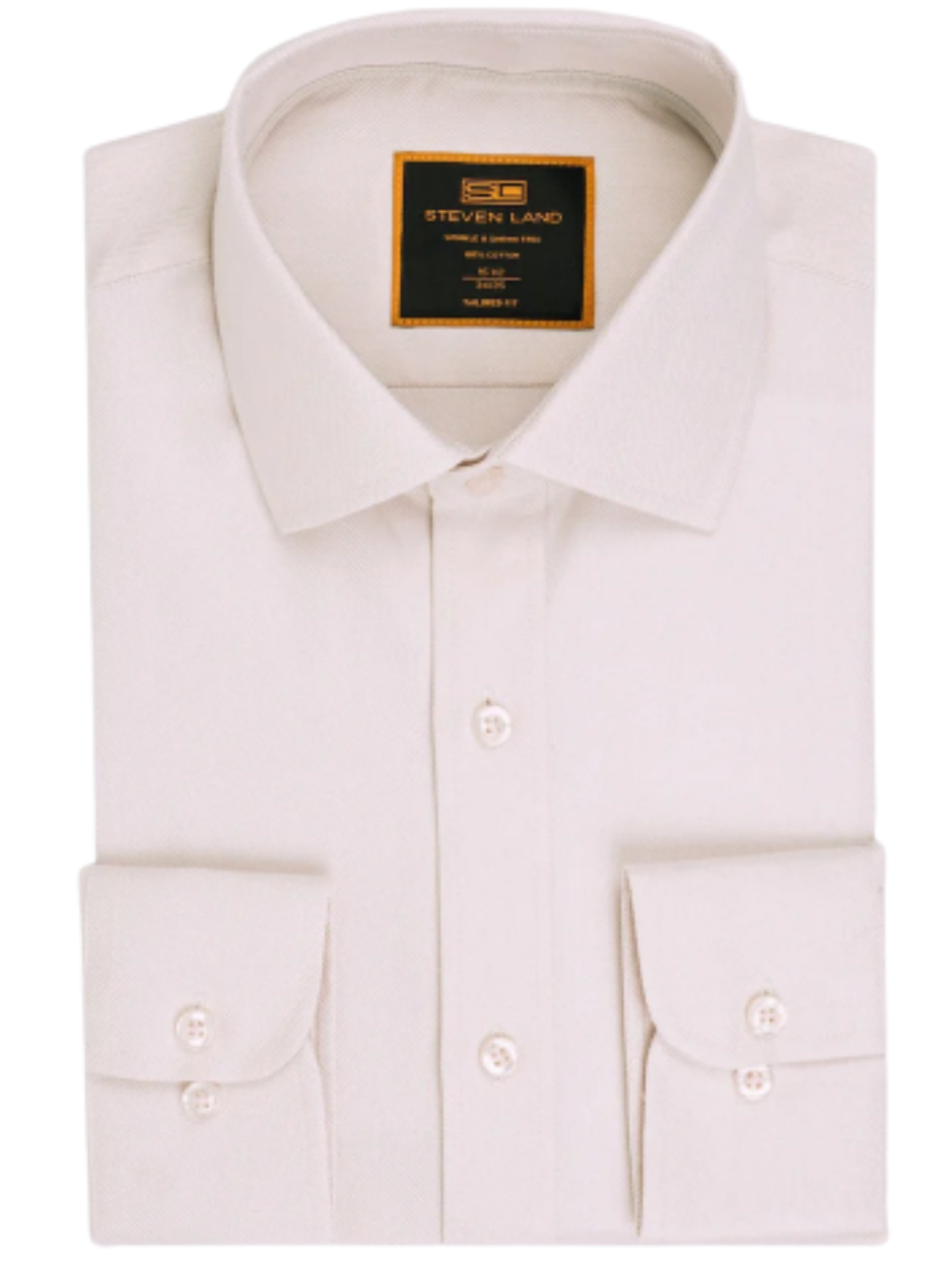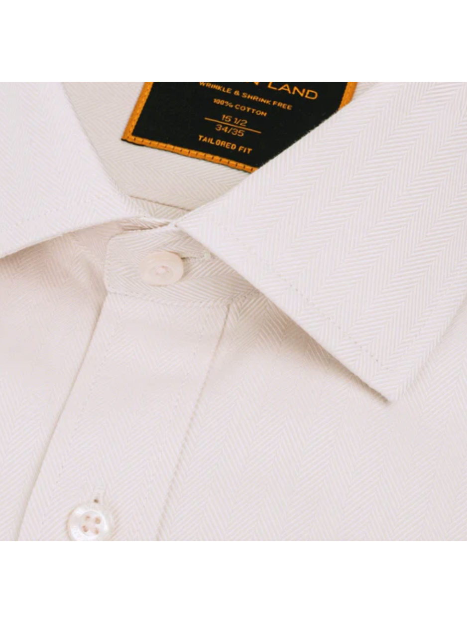 Steven Land Cream Herringbone Classic Fit Spread Collar Wrinkle Shrink Free Cotton Dress Shirt