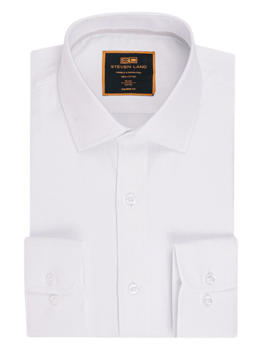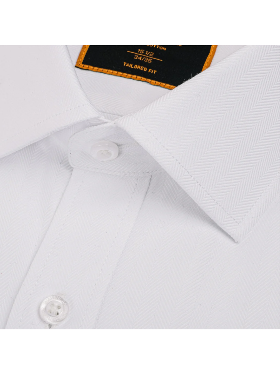 Steven Land White Herringbone Classic Fit Spread Collar Wrinkle Shrink Free Cotton Dress Shirt