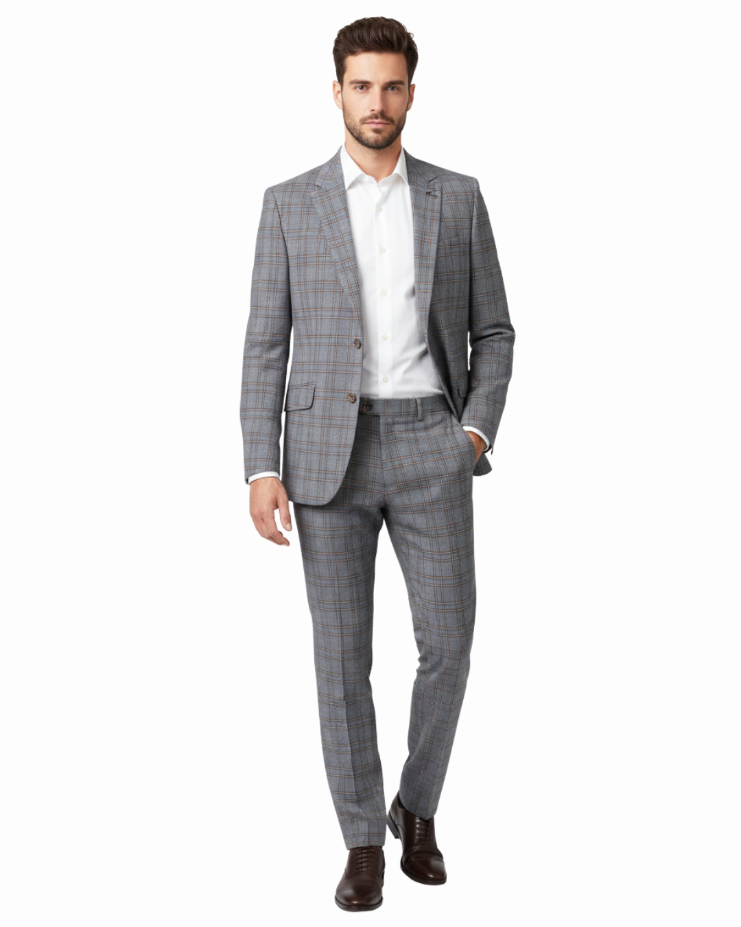 Men's Two Piece Slim Fit Stretch Windowpane Check Dress Suit