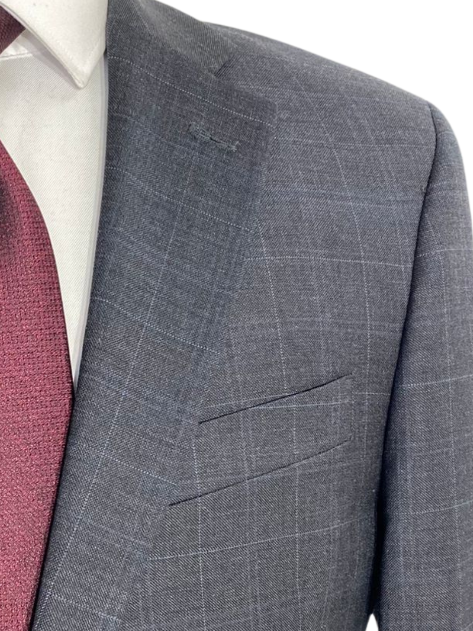 Tommy Hilfiger Charcoal Grey with Light Blue Windowpane Modern Fit Notch Lapel Wool Stretch 2-Button Blazer Sportcoat